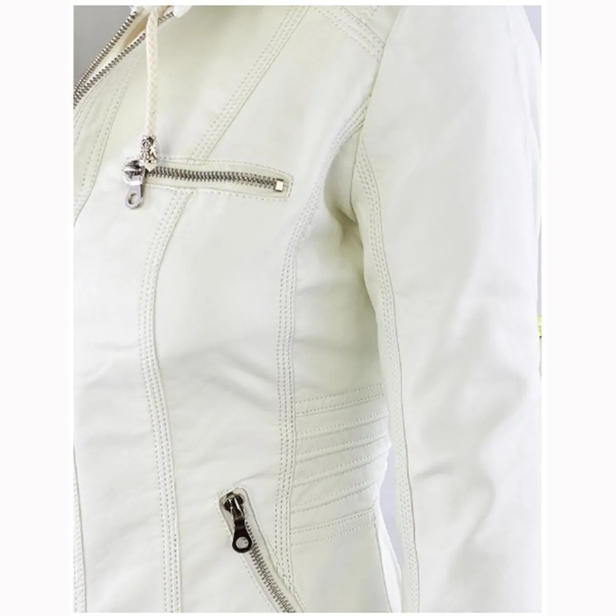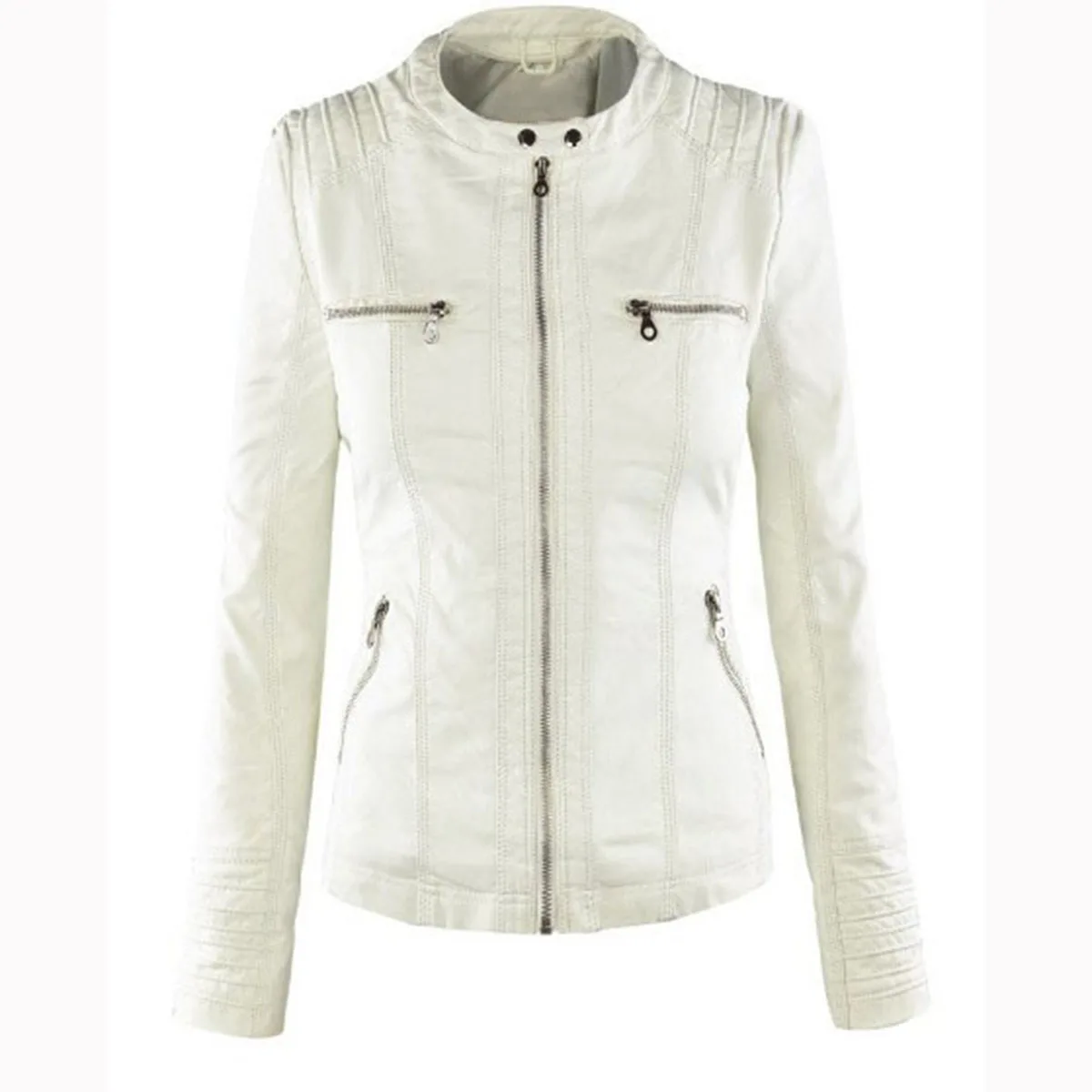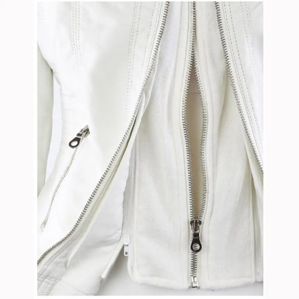Женская ветровка из ПУ кожи, однотонная белая куртка на молнии с дл...