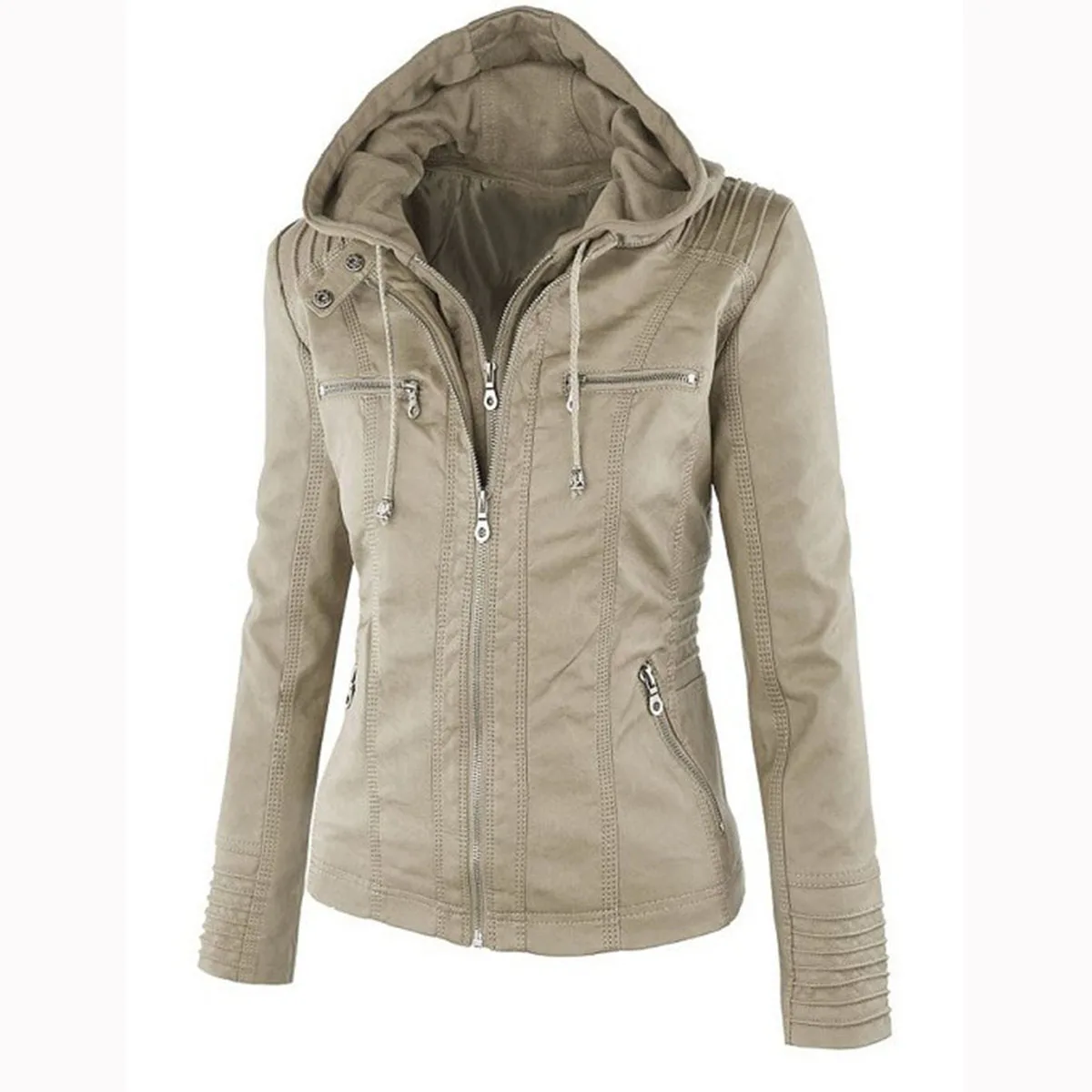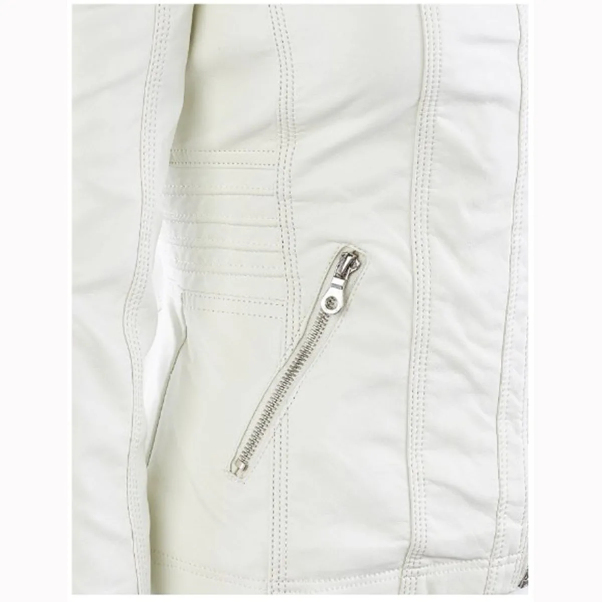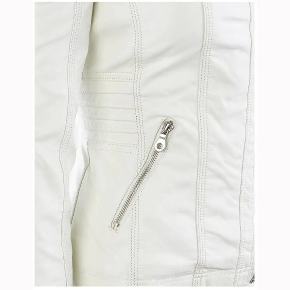 Женская ветровка из ПУ кожи, однотонная белая куртка на молнии с дл...