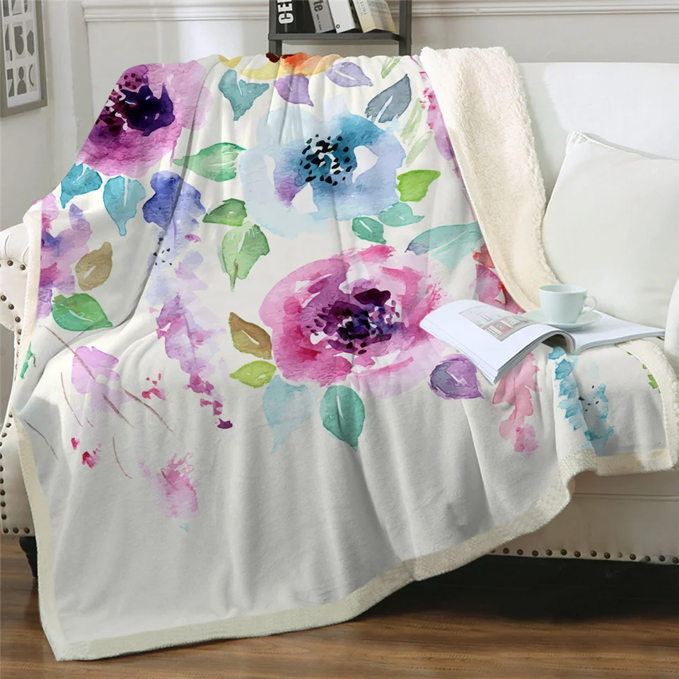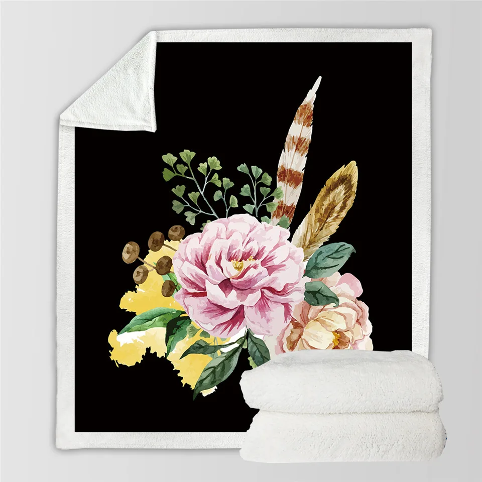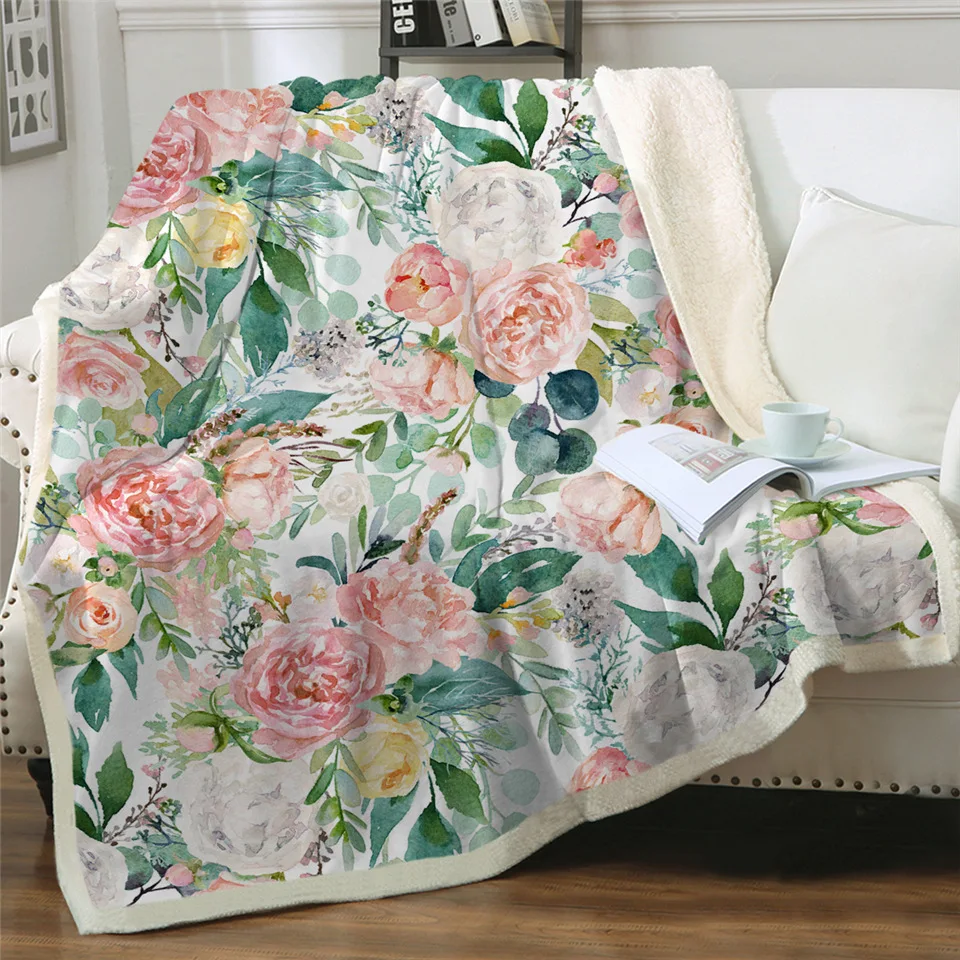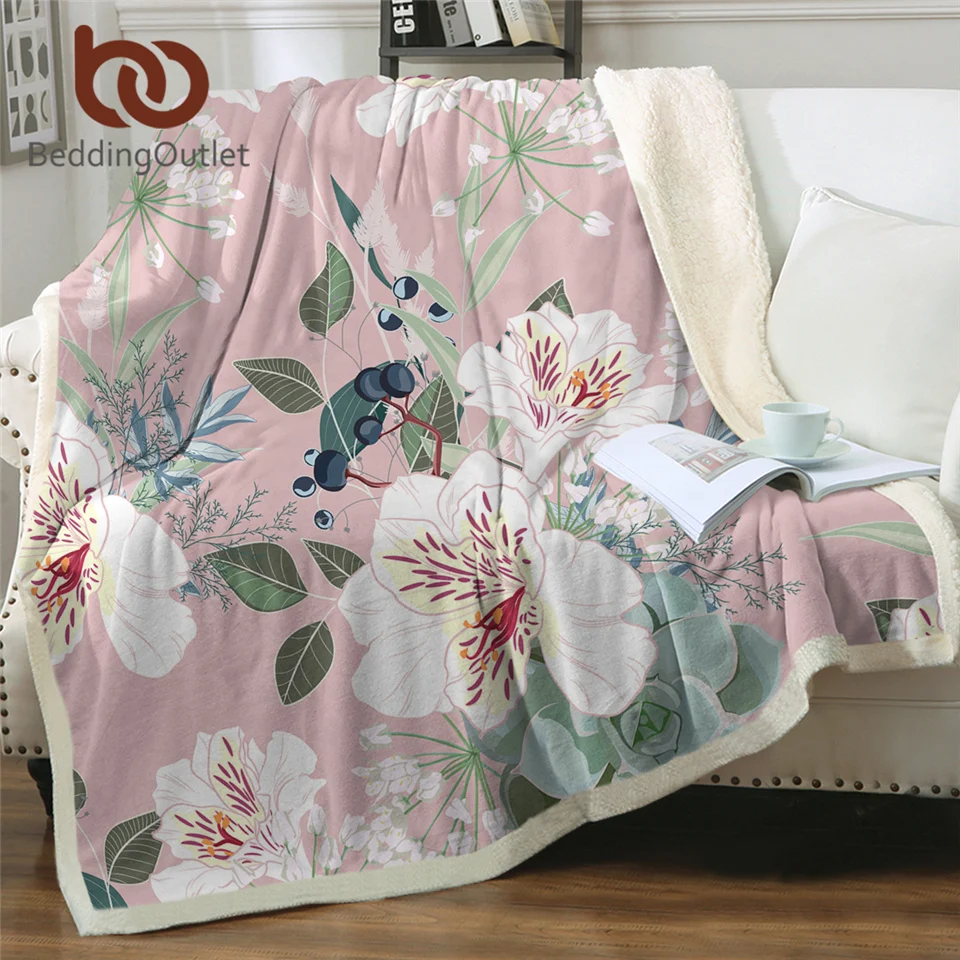 Одеяло BeddingOutlet из меха с цветами для кровати, розовое плюшевое постельное белье с цветами для девочек, пушистое одеяло с листьями растений, подарок с любовью