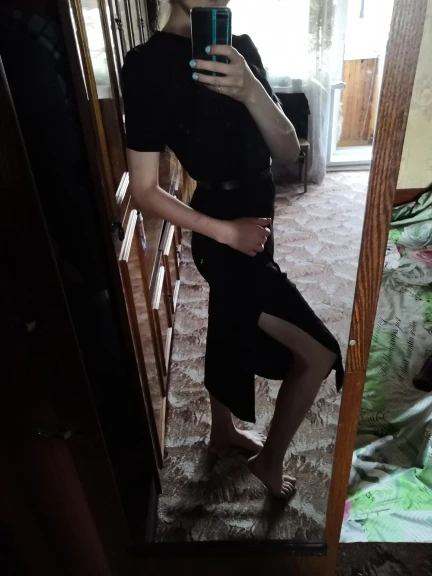 Платье женское средней длины, повседневное Черное длинное платье-фу...