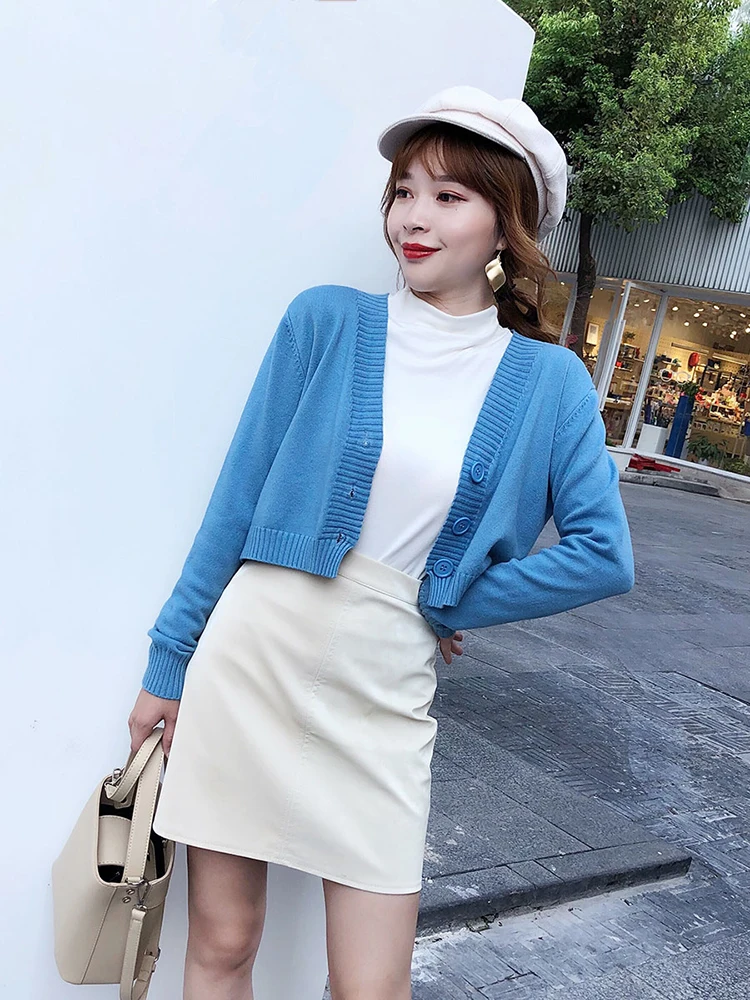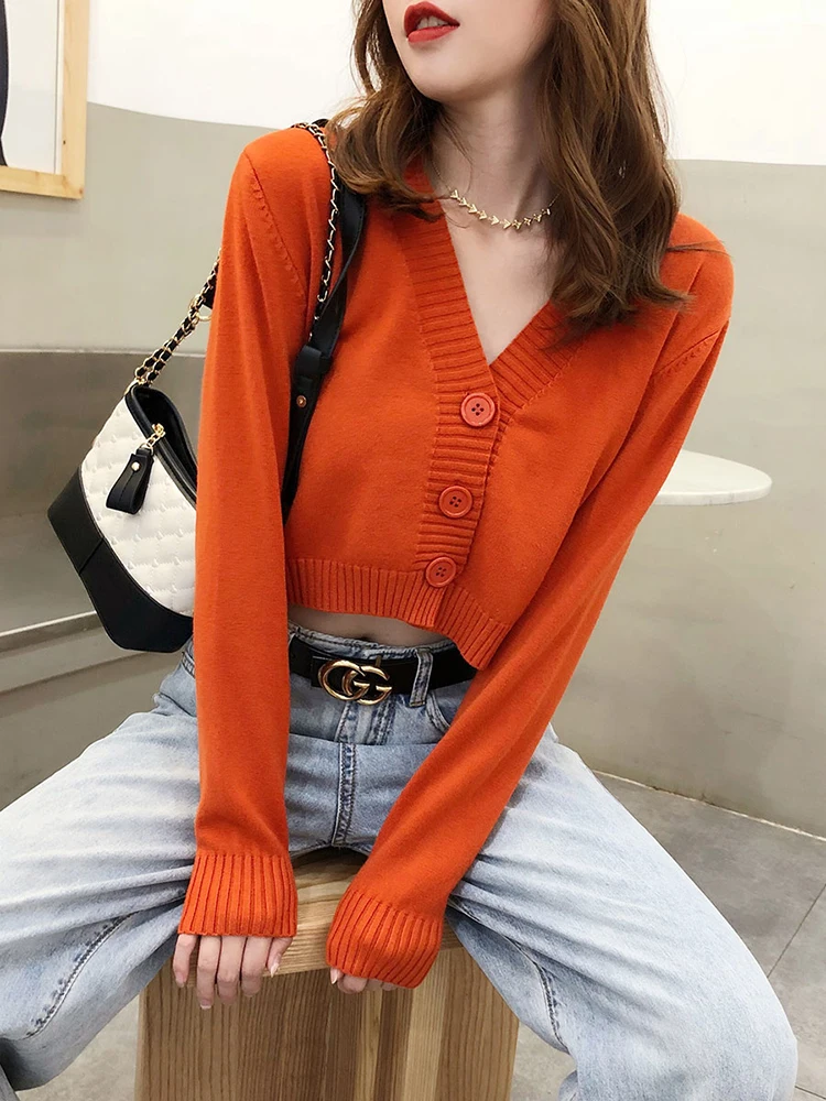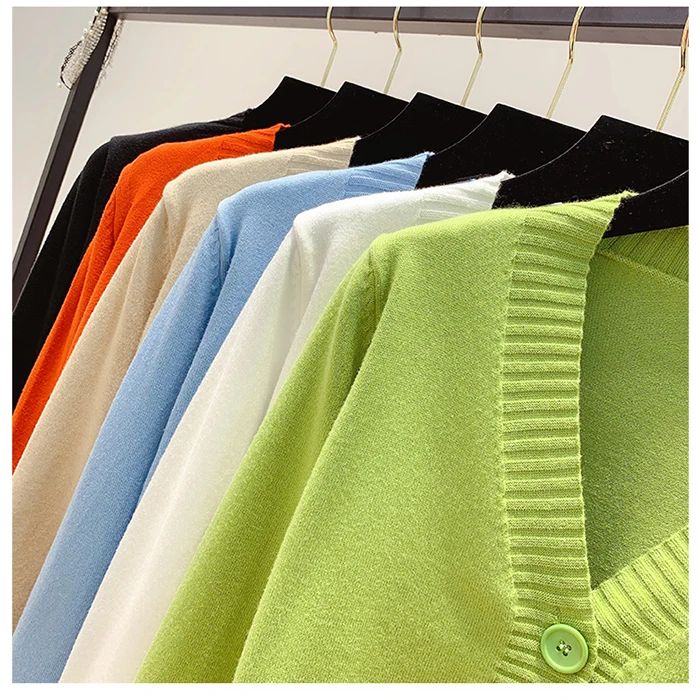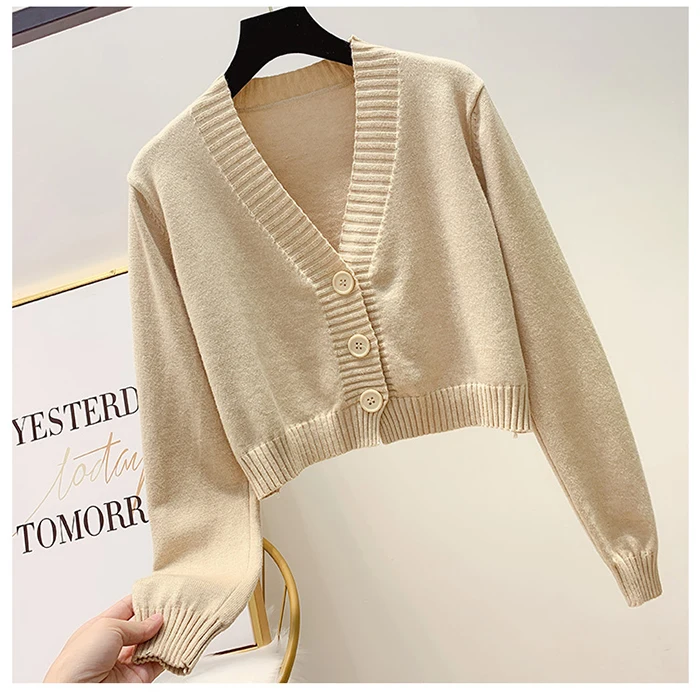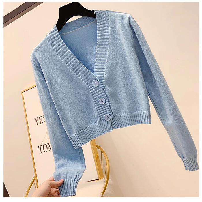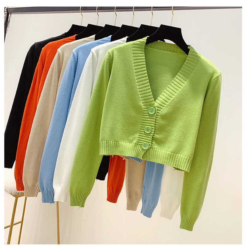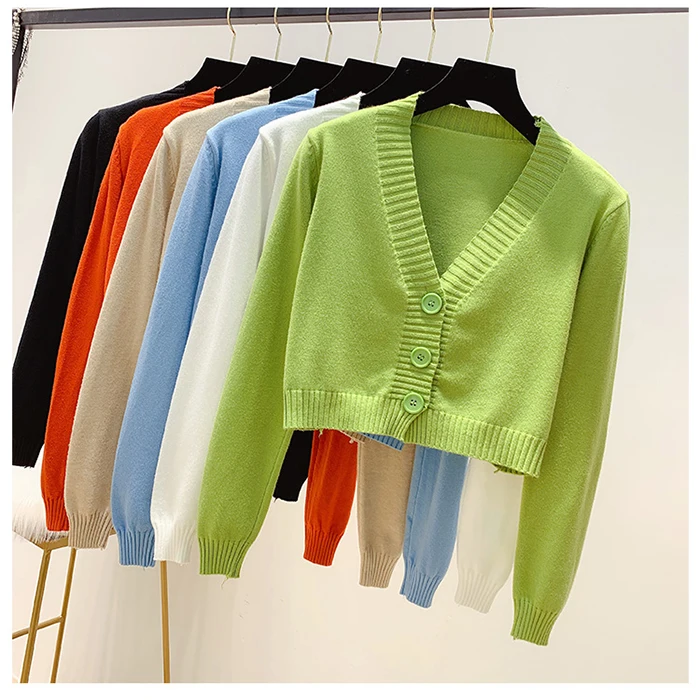 Женский трикотажный кардиган, повседневный короткий свитер с V-образным вырезом, 7 цветов, в Корейском стиле, весна-осень 2021