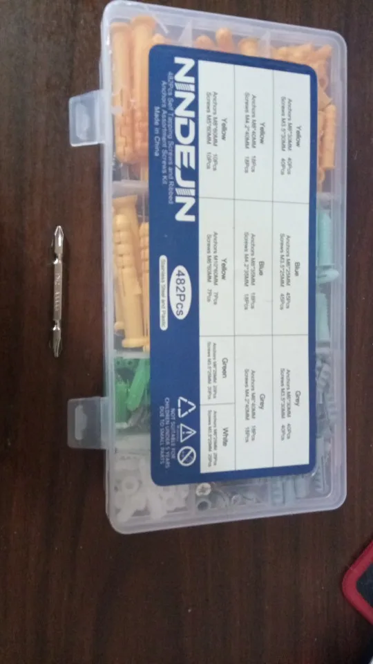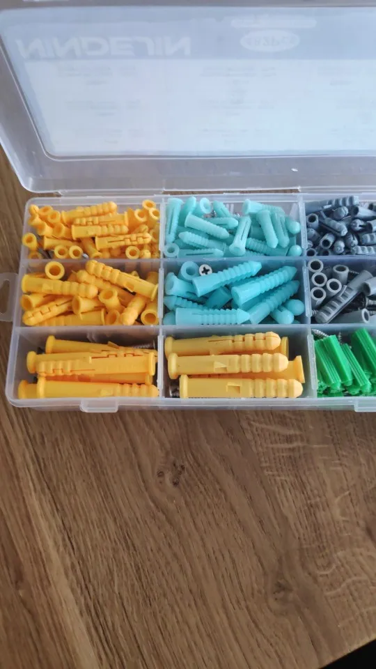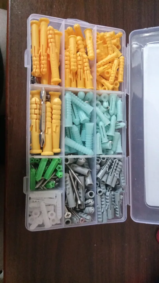Комплект пришел раньше, а затем ожидал, хотя вчера я все еще покупал пробки и винты у моего соседа, теперь я получил много, чтобы выбрать для себя, без необходимости беспокоить людей по следующей двери за каждую крошечную маленькую вещь, которая идет на стену. Я не подсчитывал содержимое, коробка заполнена до краев, и она не может содержать больше, так как она уже слегка выгнута. Коробка имеет отдельные съемные разделители, так что вы можете сделать место для больших предметов. Очень хороший комплект, я буду смотреть на некоторые другие продукты, а также, я получил много вещей, чтобы сделать в и вокруг дома.