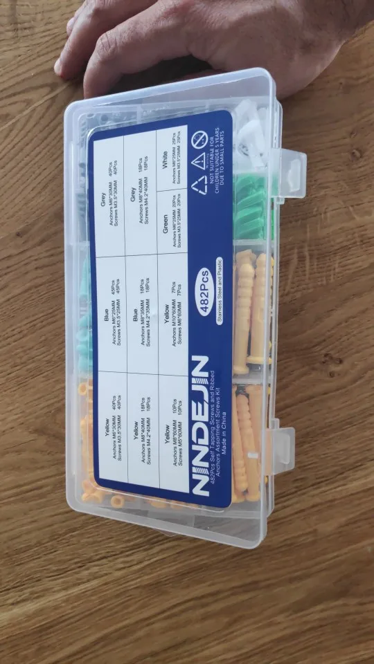 отличный набор креплений! но как всегда есть одно но... футляр сделан из такого говённого пластика, что просто нет слов... как его наша почта не сломала для меня загадка. он крошится от малейшего применения силы... он приехал уже сильно покоцаным. в подарок продаван положил две биты РН2 из стали на которой шлицы слизались, буквально за пару десятков саморезов. но все равно это не отменяет того, что набор великолепный по набору крепежа!