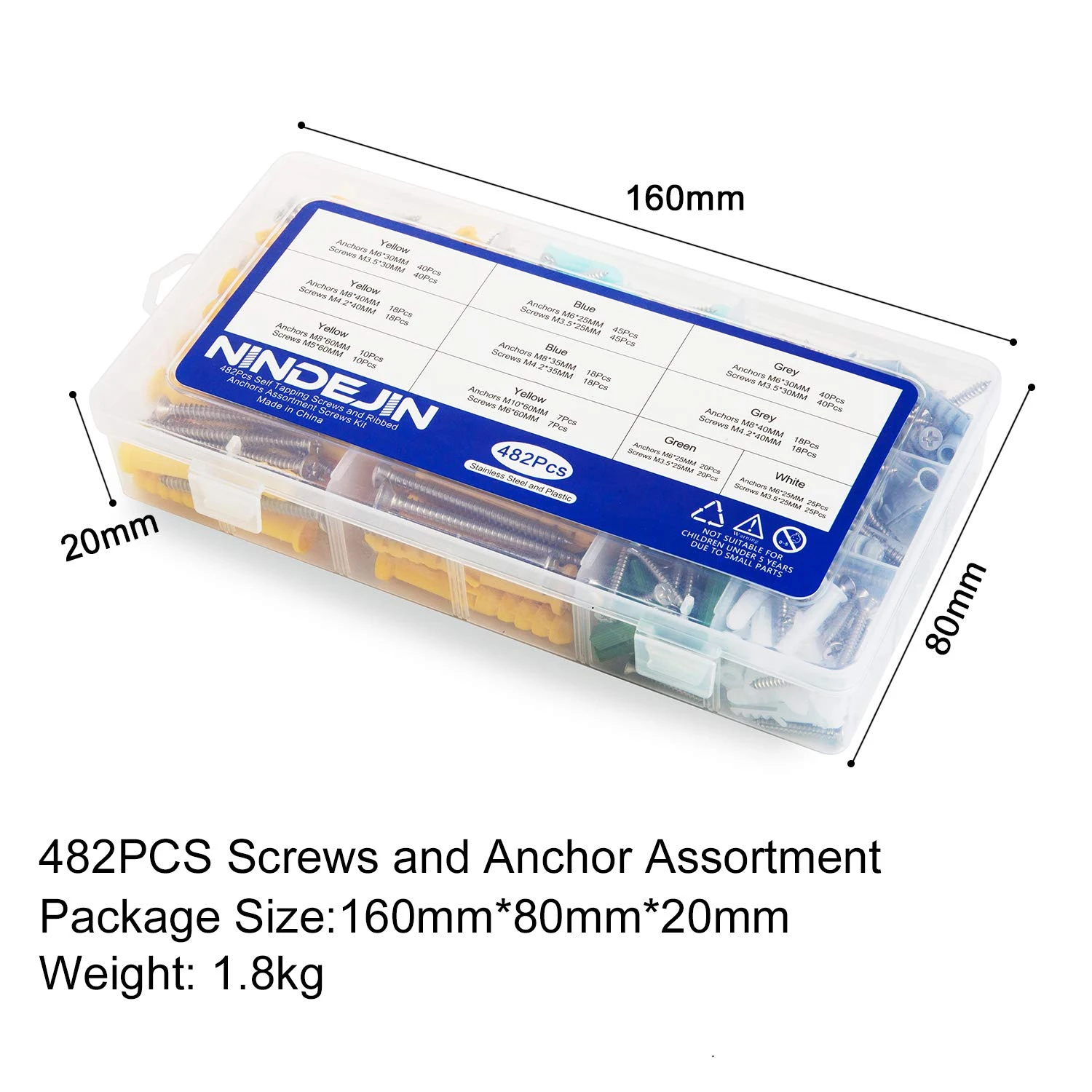 NINDEJIN 482 шт.компл. набор пластиковых экспандеров для гипсокартона с саморезом M3.5 M4.2 M5 M6 Расширительная трубка из нержавеющей стали