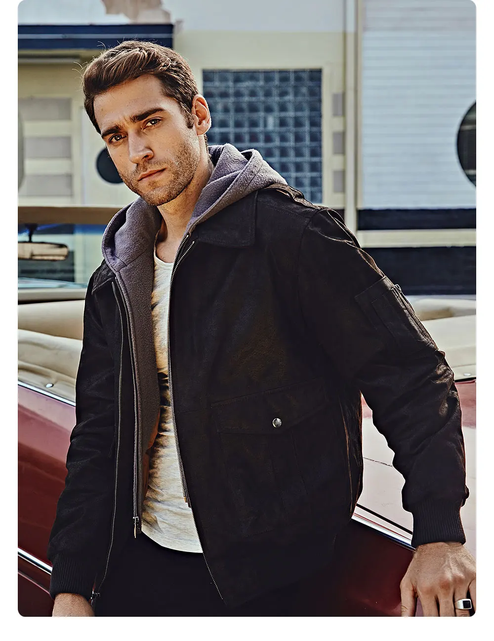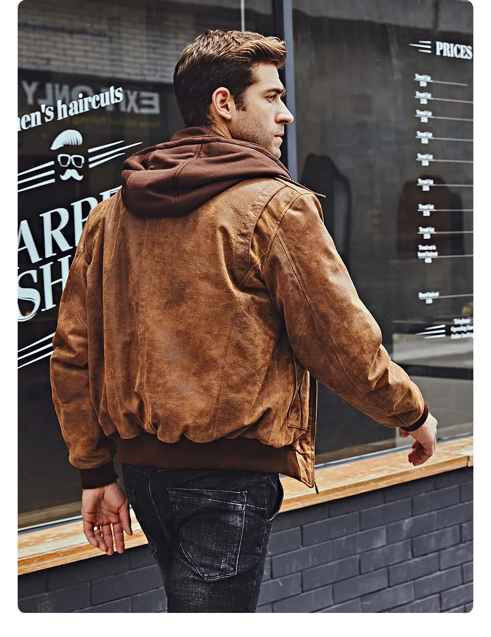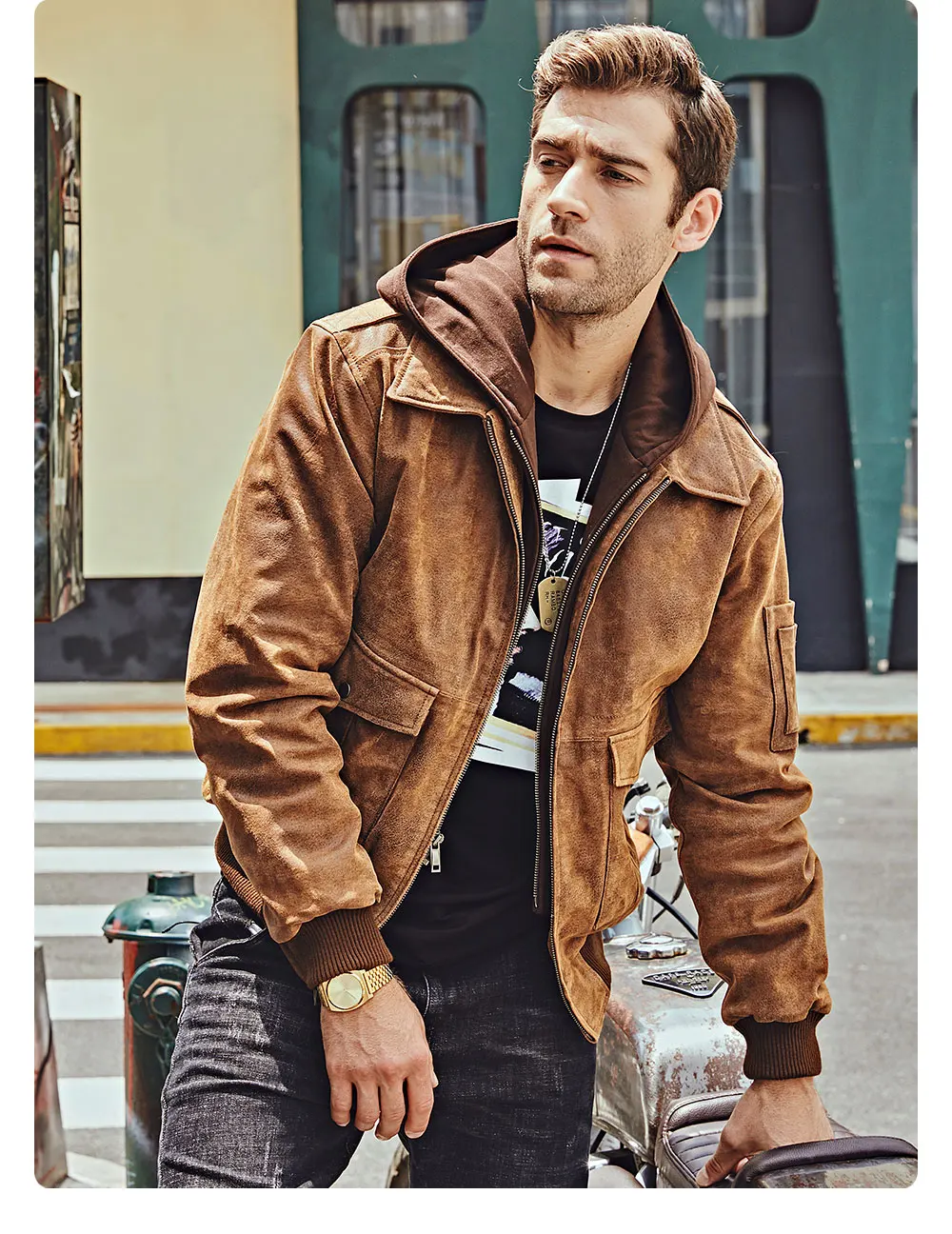 Мужская кожаная куртка-бомбер FLAVOR, куртка-Авиатор из натуральной кожи со съемным капюшоном, теплая куртка на зиму