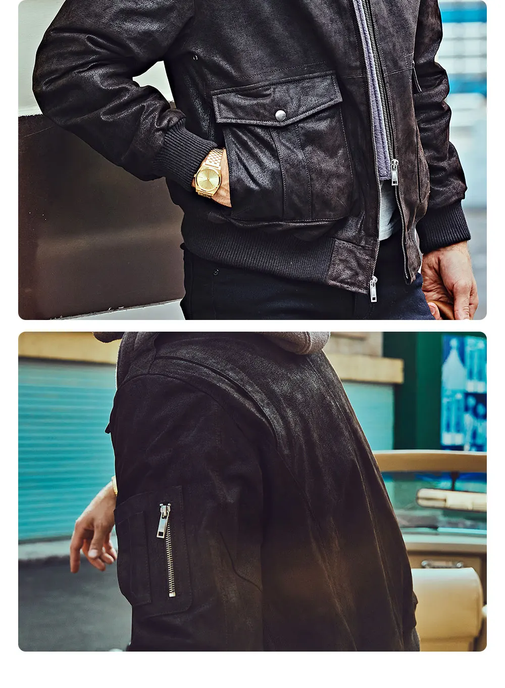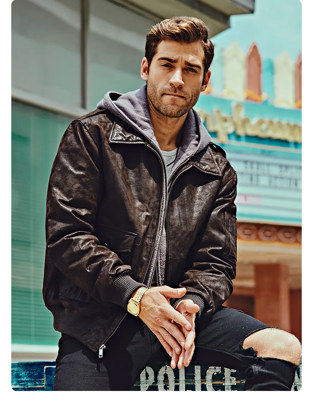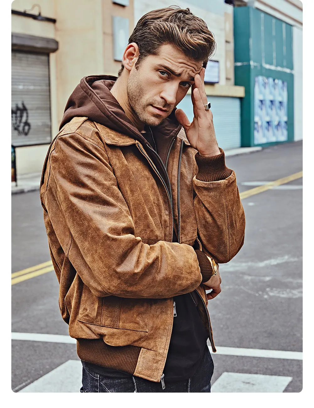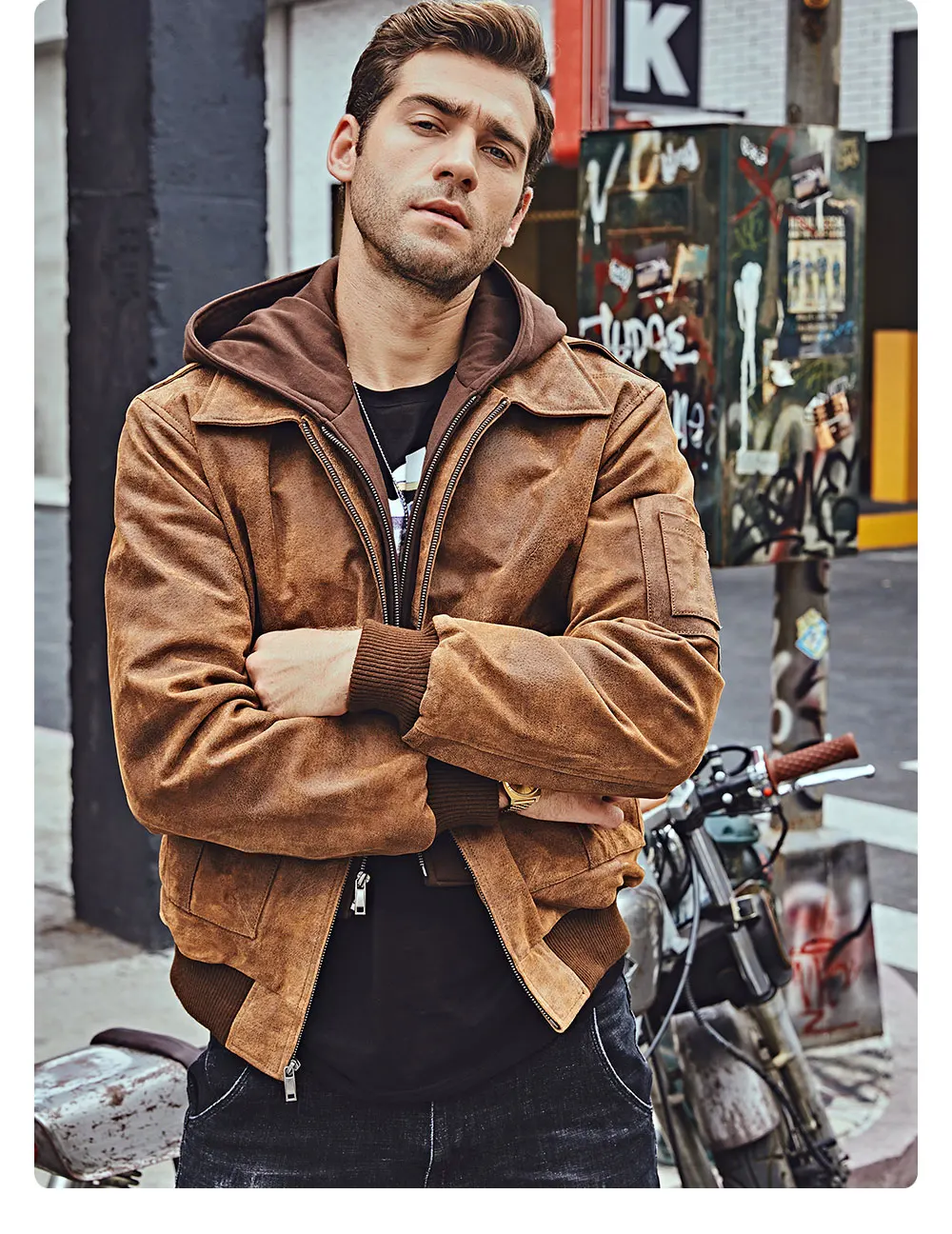 Мужская кожаная куртка-бомбер FLAVOR, куртка-Авиатор из натуральной кожи со съемным капюшоном, теплая куртка на зиму