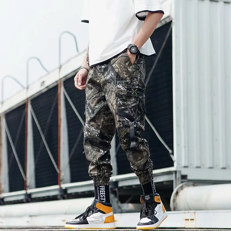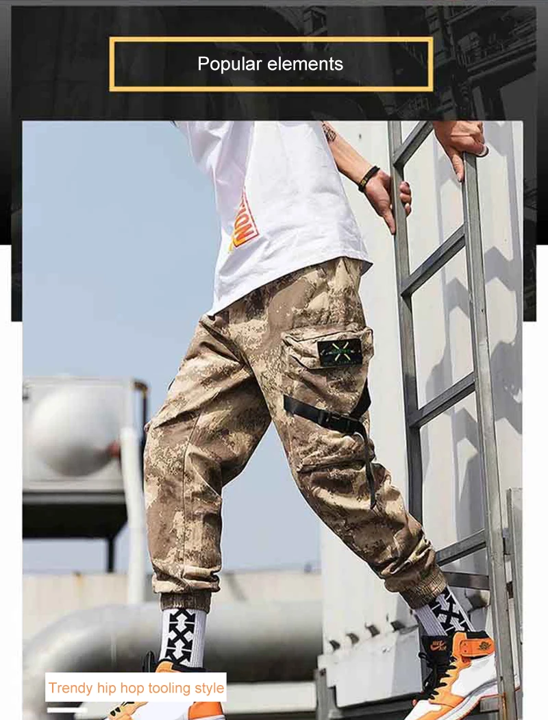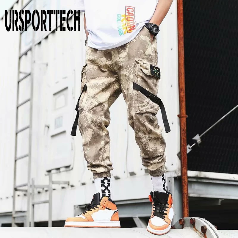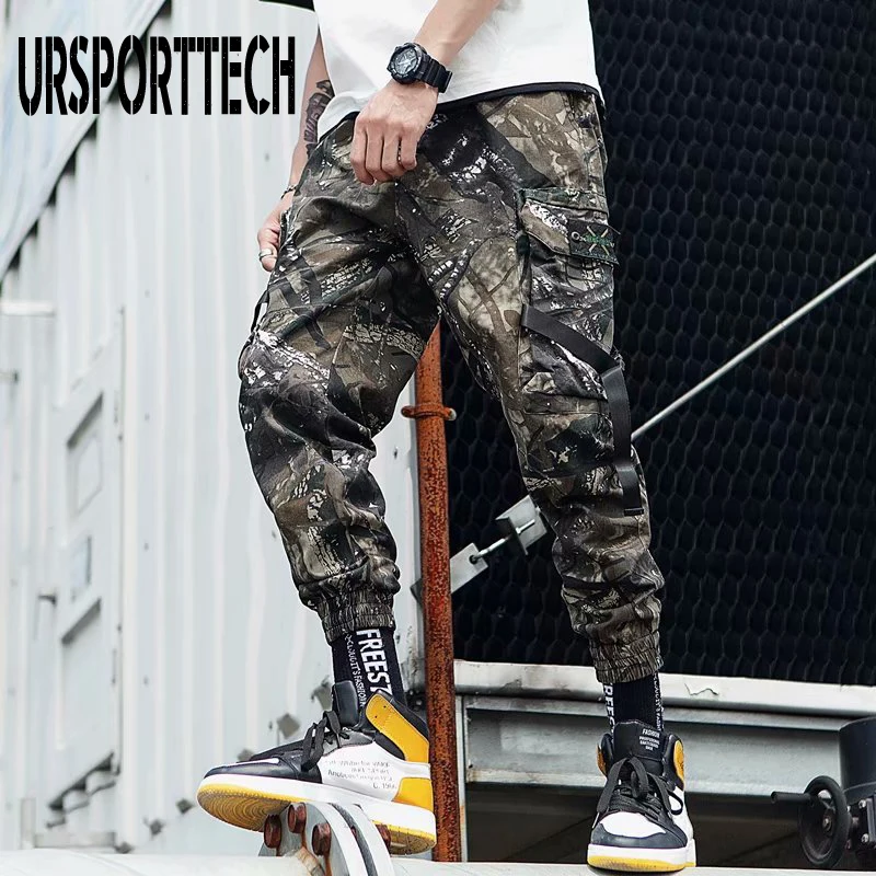 Брюки-карго URSPORTTECH мужские, камуфляжные джоггеры, длинные штаны в стиле хип-хоп, с эластичным поясом, модная уличная одежда