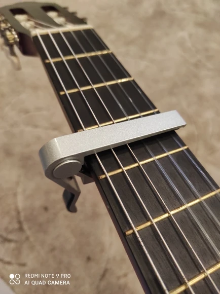 каподастр не плохой, струны зажимает хорошо, но качество такое себе, особенно с покраской