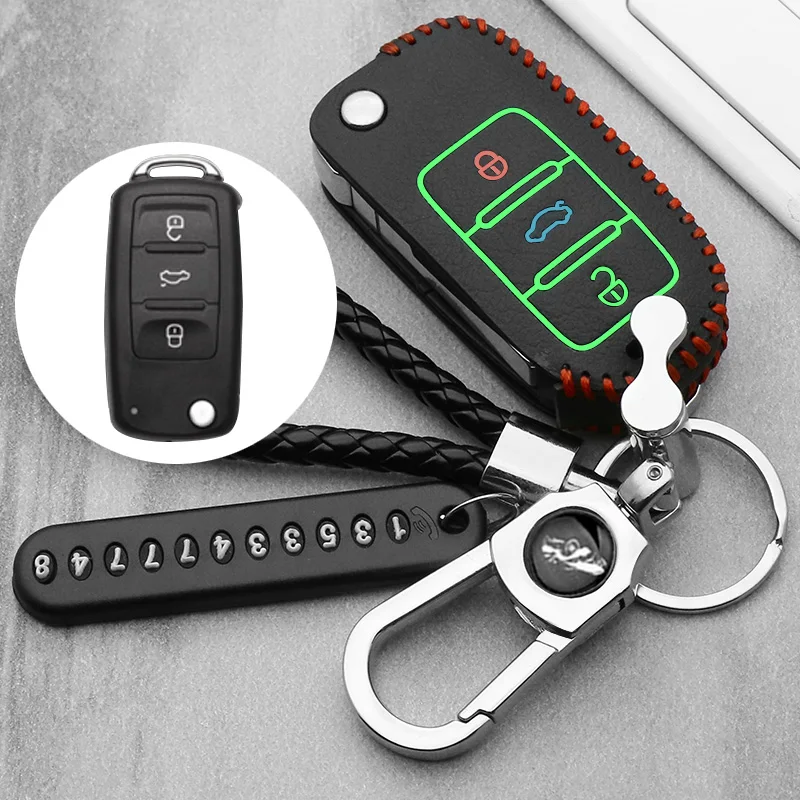 Светящийся кожаный чехол для автомобильных ключей, чехол для Volkswagen polo passat golf 5 6 jetta tiguan Gol CrossFox Plus Eos Scirocco Beetle