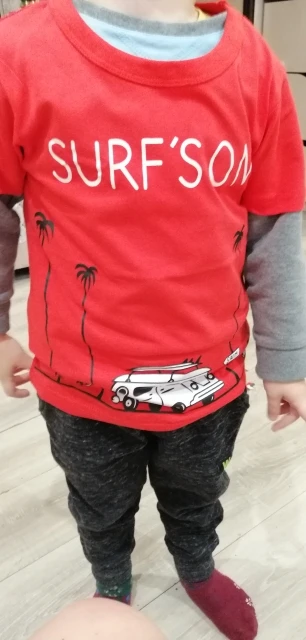 Хорошая футболка, все как в описании. Рисунок чёткий заказала размер 3т, подошло отлично на мальчика 2 года, рост 95, есть чуть чуть запас. Заказывала на пробу, все отлично, жду вещи большего размера, а эти пока в садик будем носить. Очень порадовало качество, для 250-280 рублей очень даже не плохо. Нитки не торчат, запаха небыло совершенно. После стирки не полиняла и форму не потеряла. Рекомендую