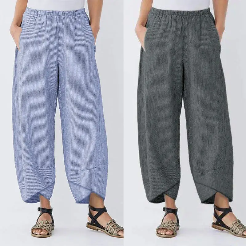 Женские широкие брюки ZANZEA, повседневные Асимметричные брюки в полоску с эластичной талией и карманами, уличная одежда
