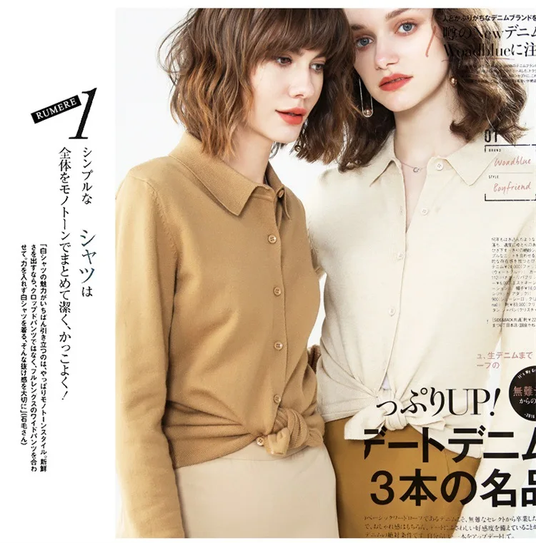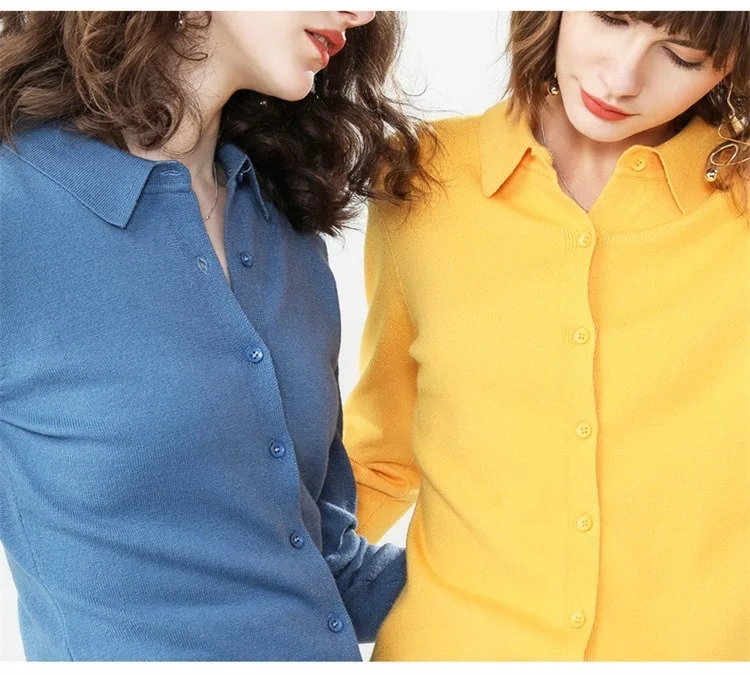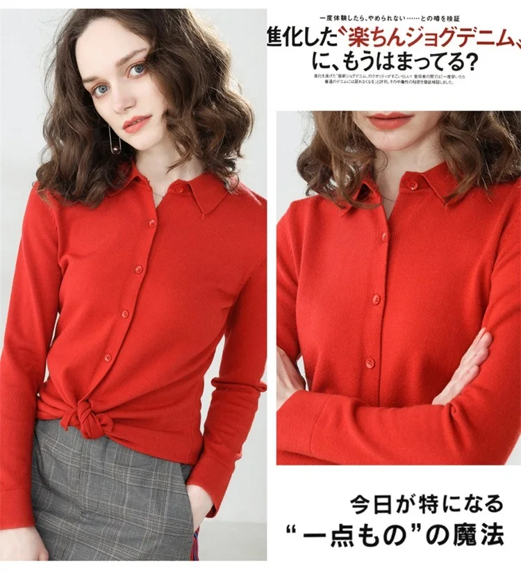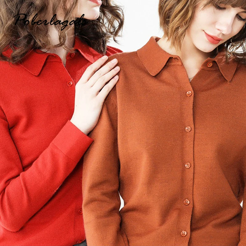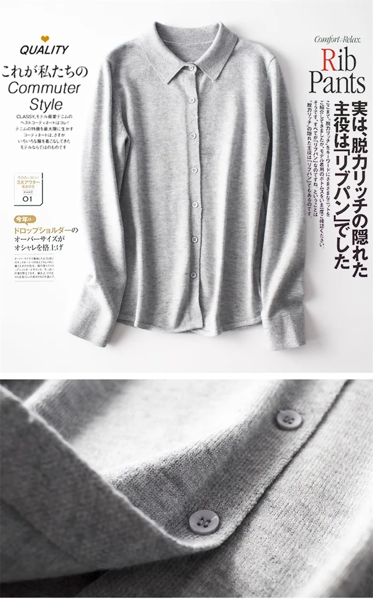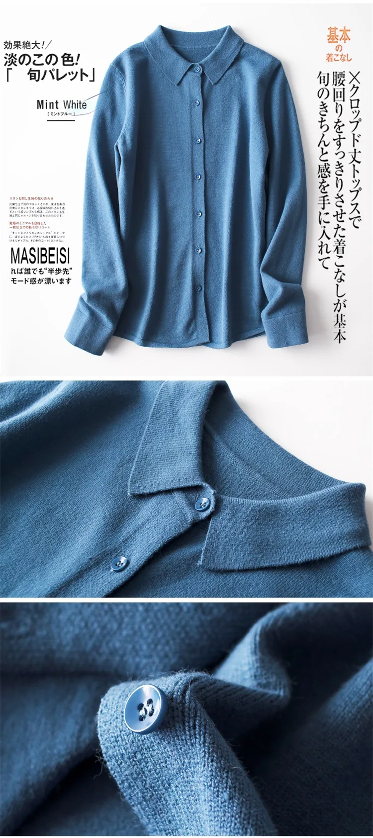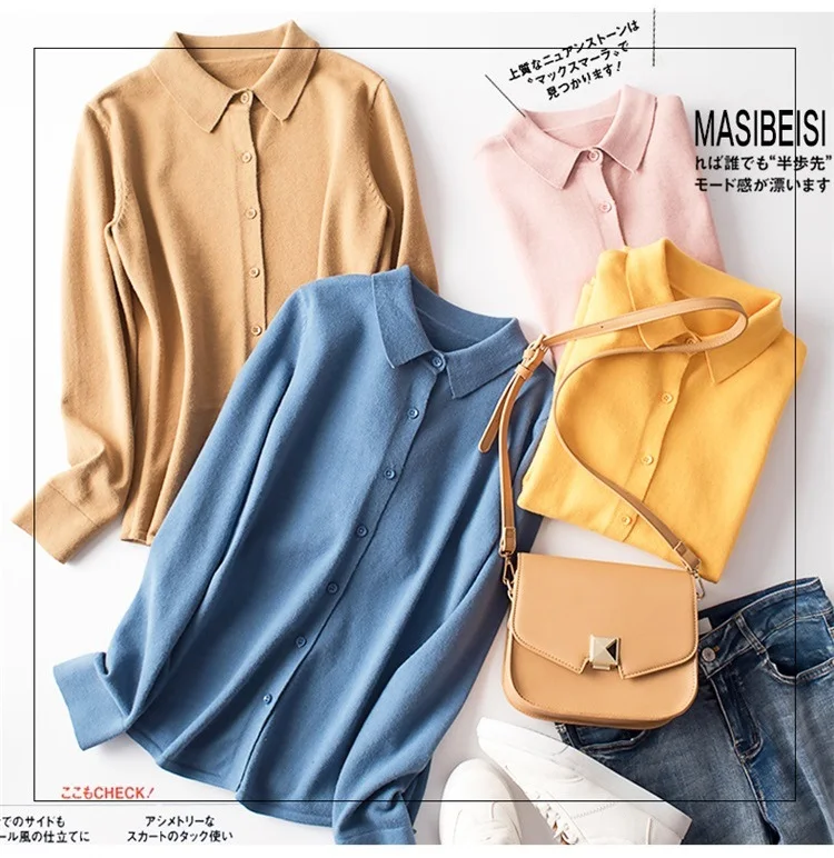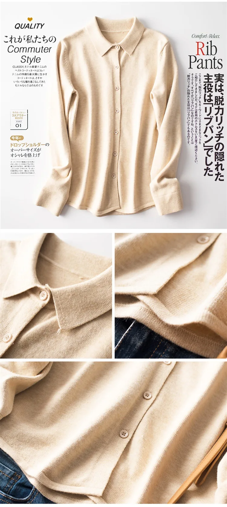 Осенне-зимний вязаный кардиган-рубашка с отворотом, женский свитер, кардиган из 2019 шерсти, трикотажная одежда, пальто кашемировый свитер, кардиган