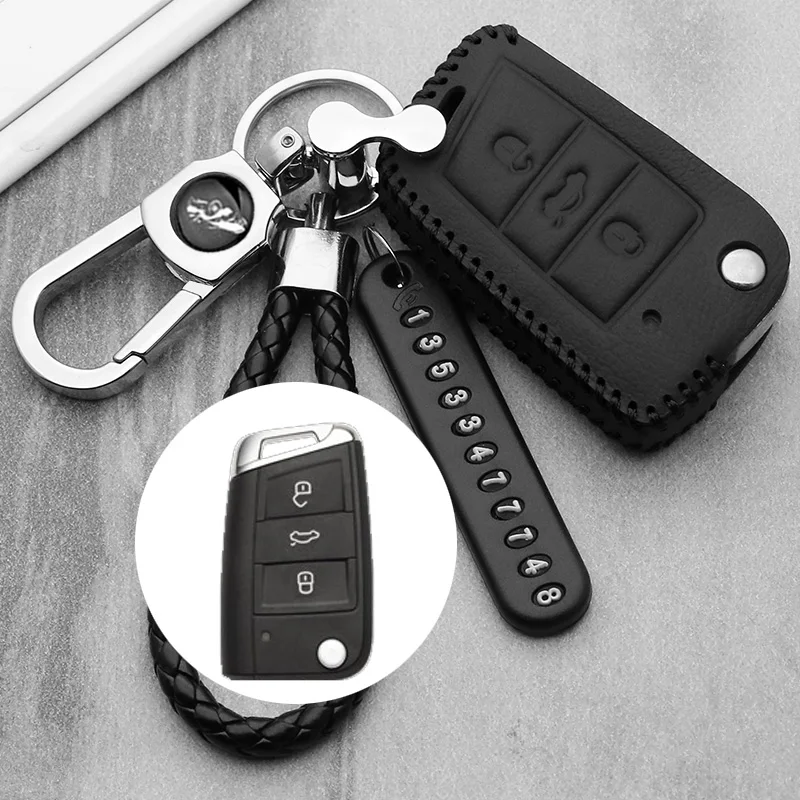 Кожаный чехол для ключей для Volkswagen VW Golf 7 GTI MK7POLO 2016, чехол для Skoda Octavia A7, чехол для ключа, сумки, автомобильные аксессуары