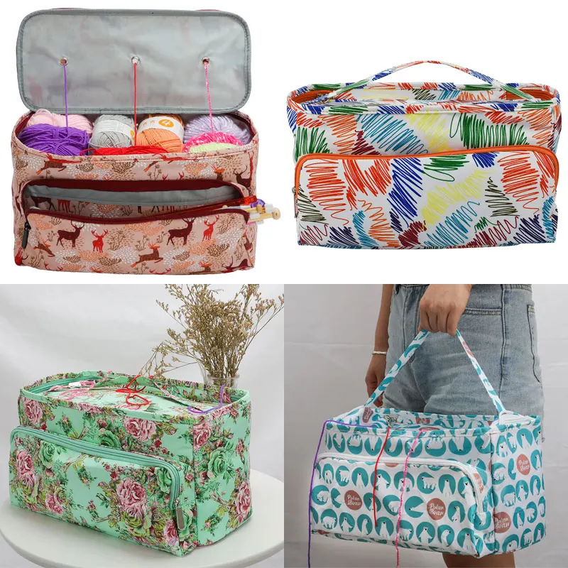 Квадратная сумка для хранения пряжи, 6 цветов, сумка для вязания крючком и спиц, вязальная сумка для рукоделия, аксессуары для шитья