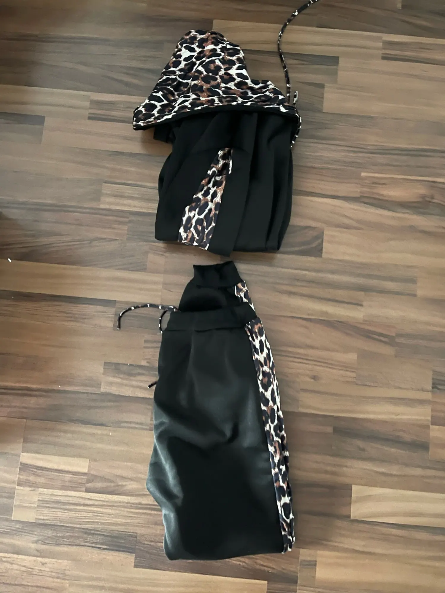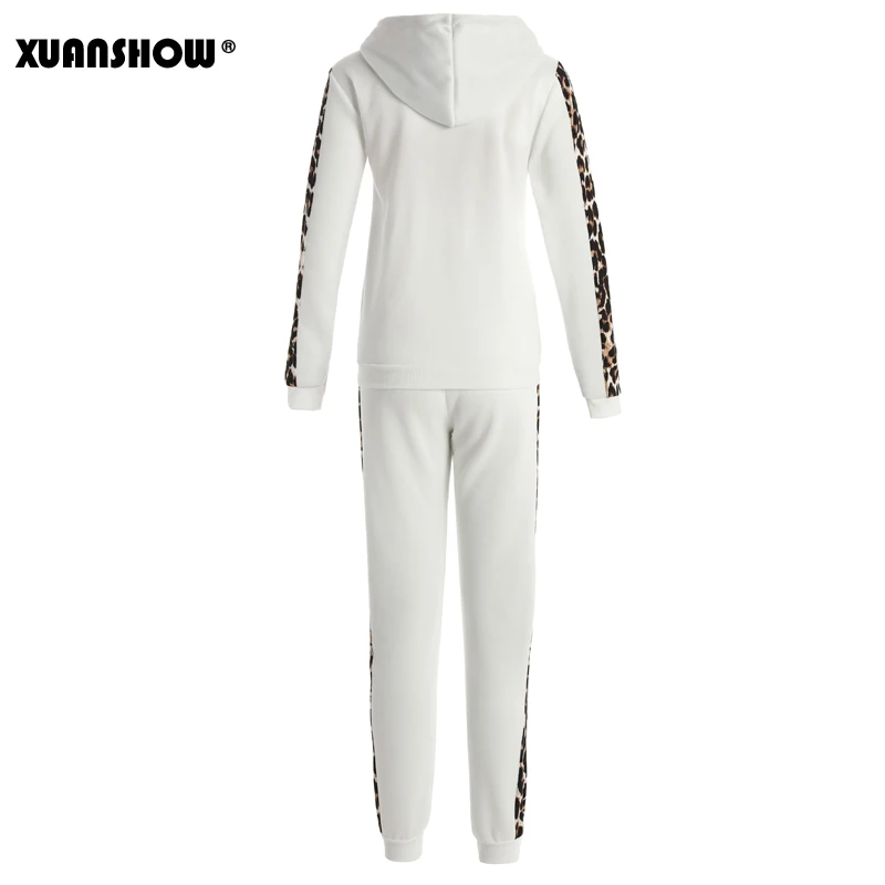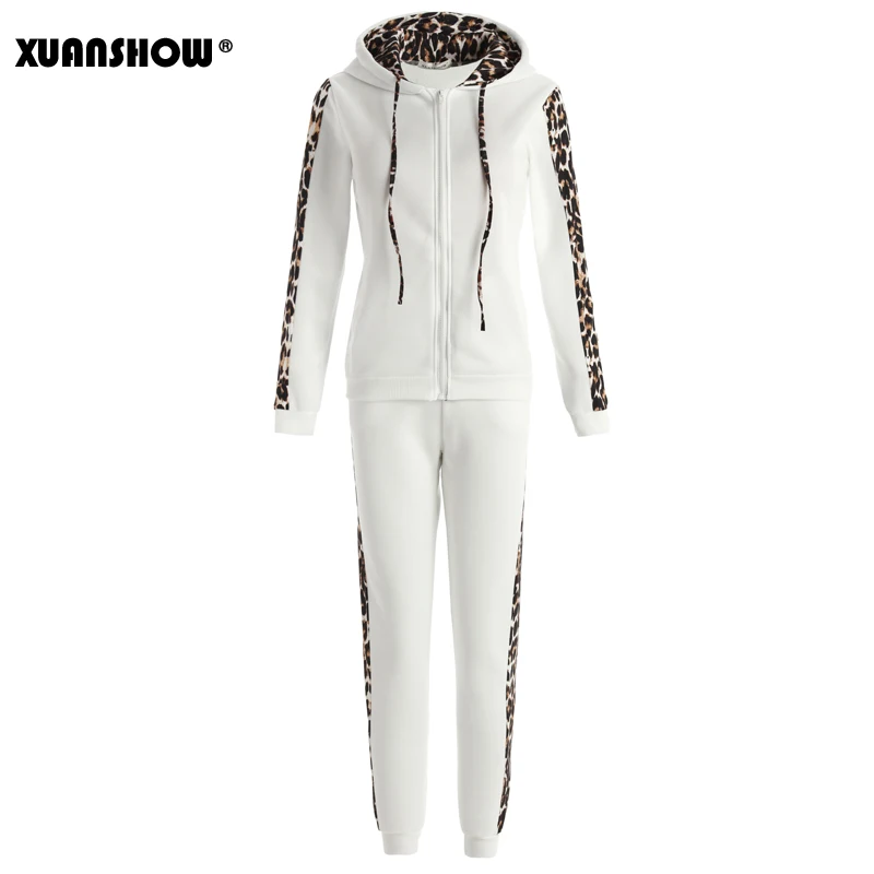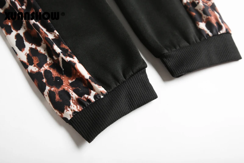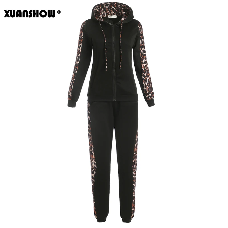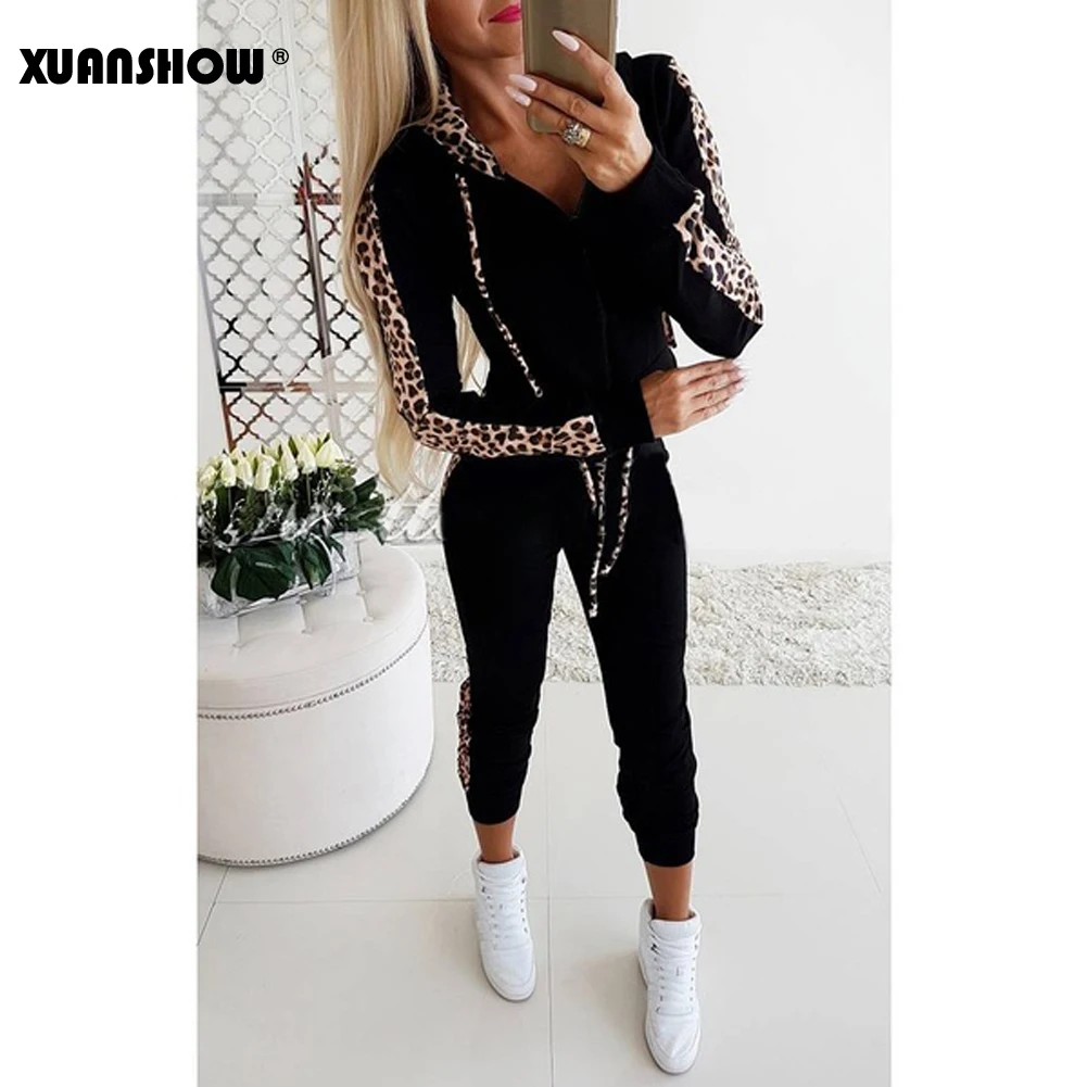 XUANSHOW Осень зима Костюм женский мода Спортивная одежда Леопардовый принт карманный застегивать Набор из двух частей Толстовки и длинные штаны