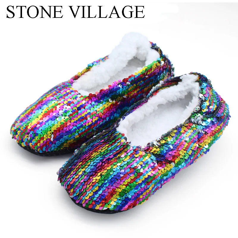 Яркие разноцветные плюшевые тапочки разных цветов в стиле Деревня камней; Женские домашние тапочки с мягкой подошвой