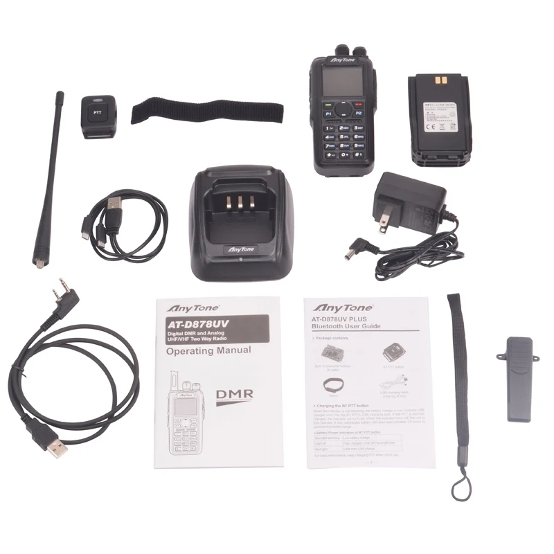 Радиолюбительское устройство Anytone AT-D878UV Plus, цифровое DMR и аналоговое UHFVHF, двухдиапазонное, Bluetooth, PTT, рация с GPS, APRS радио с кабелем для ПК
