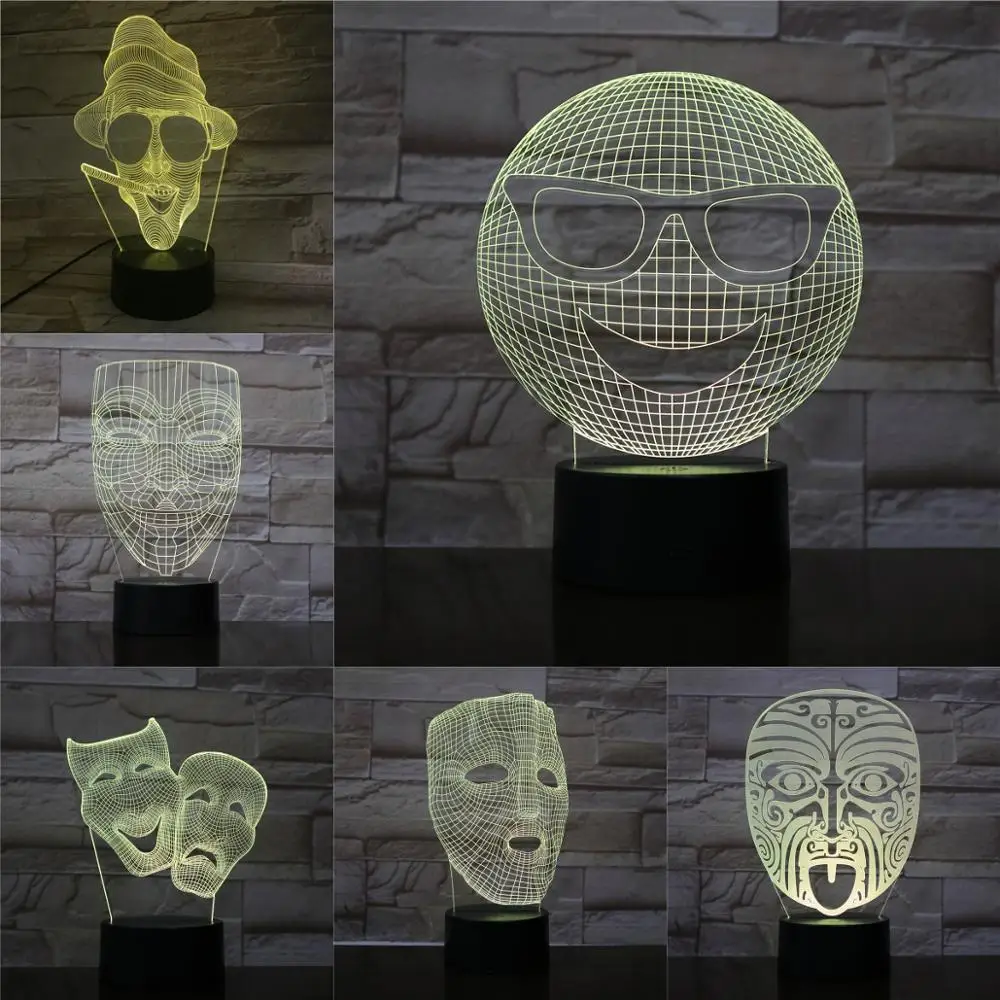 3D маска для лица, ночсветильник, светодиодная акриловая панельная лампа, настольная атмосфера, светильник НКА, свет для дома, для детей, мальчиков, подарок, разноцветная смена