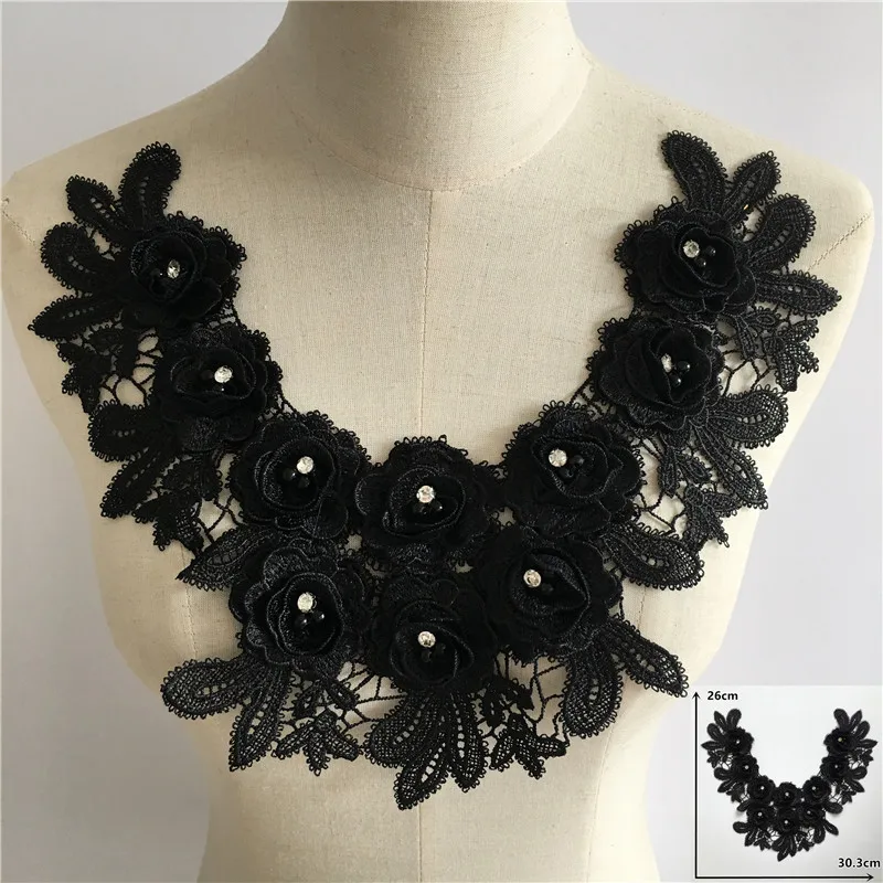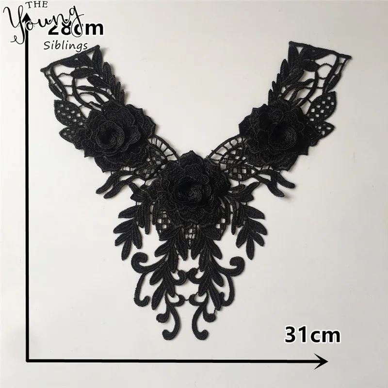 Новинка, кружевной воротник, шитье, кружевной вырез, изысканное платье, ткань для шитья, вышивка, сделай сам, аппликация на одежду, черный