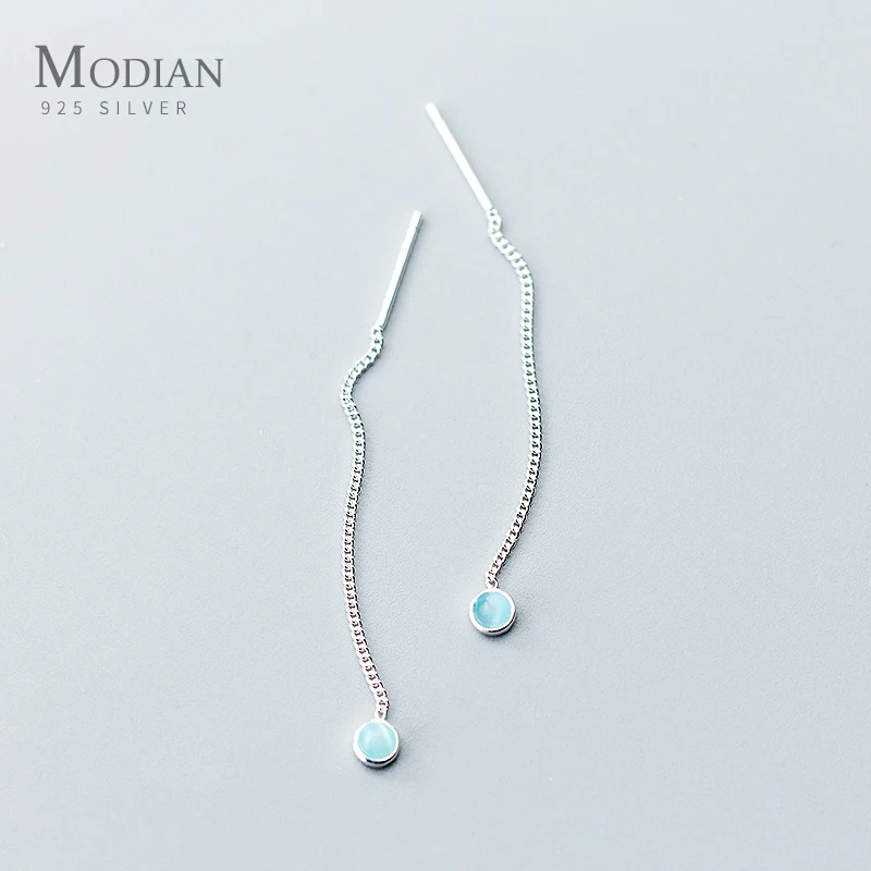 Modian простой модный синий опал длинные висячие серьги с кисточкой Классические стерлингового серебра 925 элегантные ювелирные изделия для женщин женская серьга