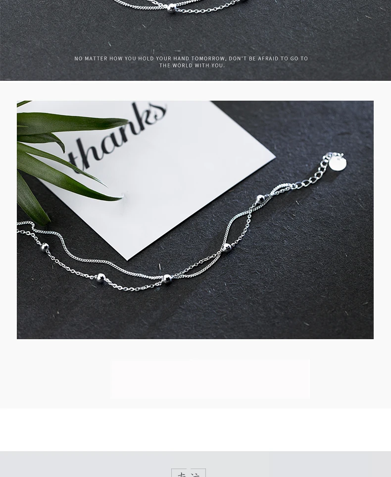 ElfoPlataSi минималистский Браслет из стерлингового серебра 925 пробы двухслойный разделитель браслет-цепочка с бусинами для женщин и девушек Свадебная вечеринка DS454
