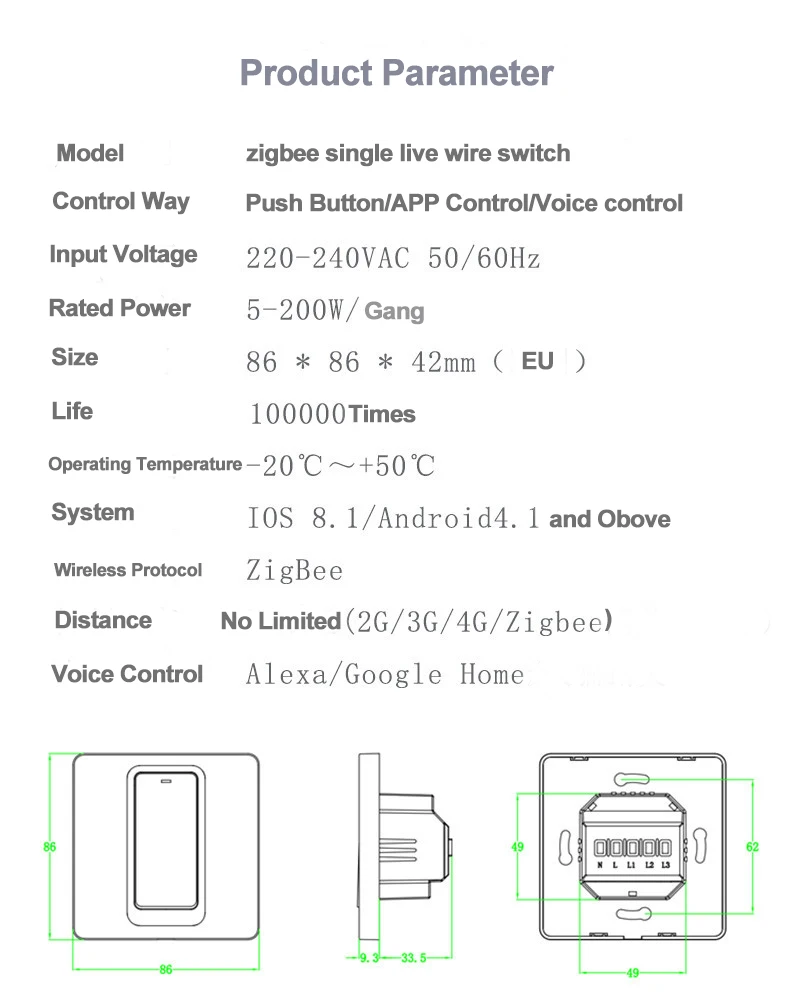 Номер моделиEU Zigbee Switch