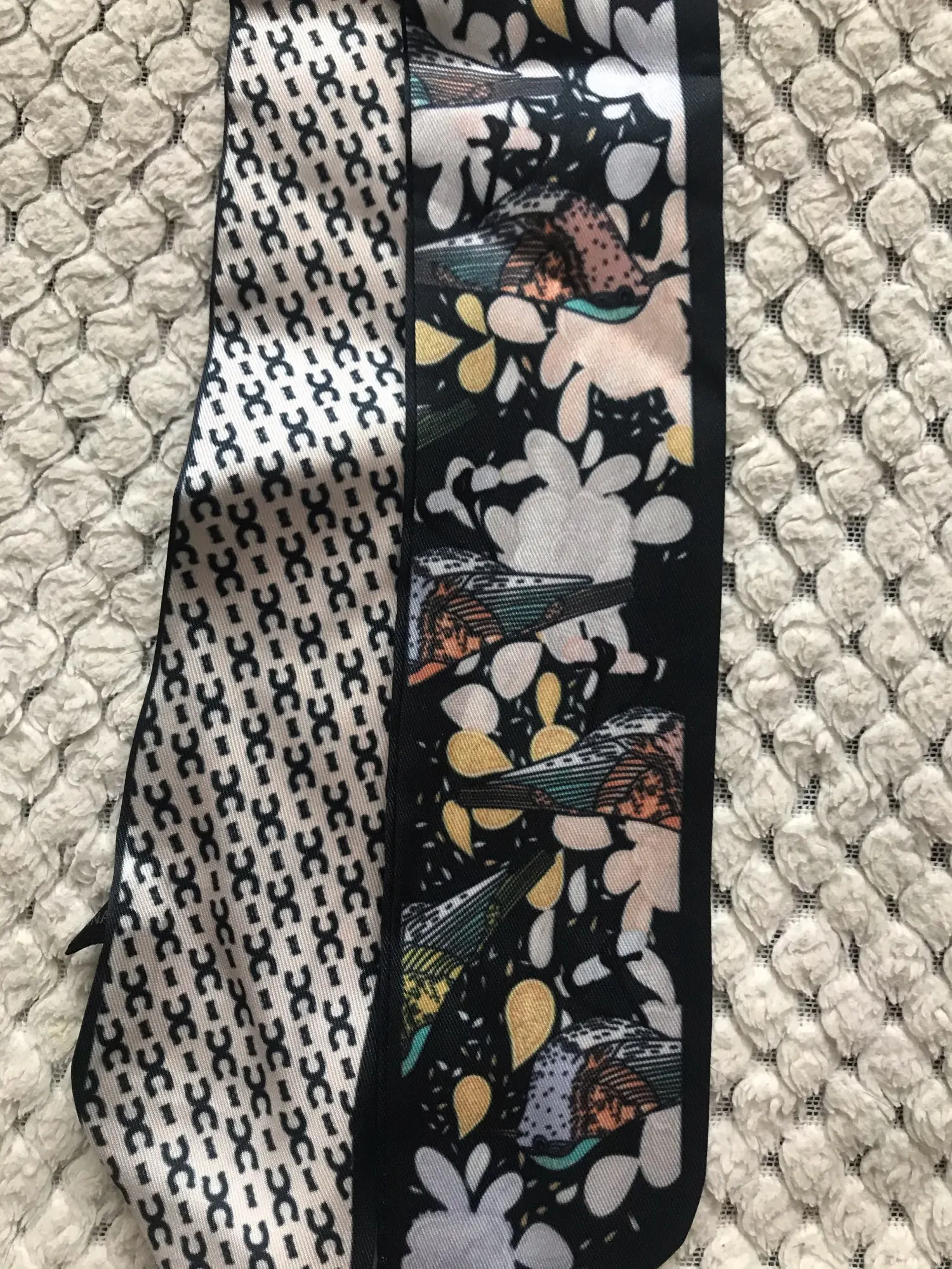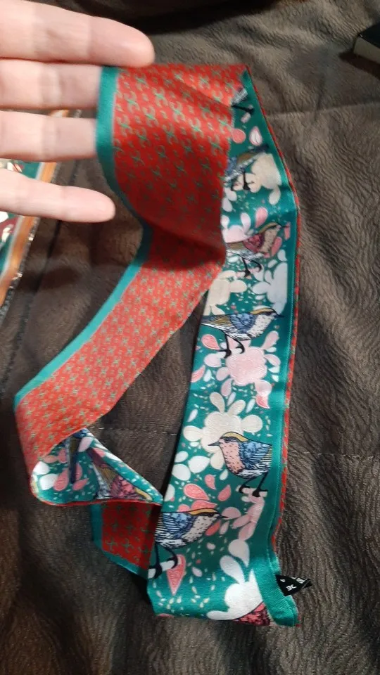 Очень красивая лента! Принт как на фото! Продавец в подарок положил резинку для волос)
