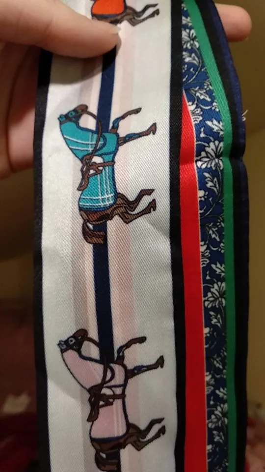 В целом ленты хорошие. Брала две одинаковые для сумки, рисунки совпадают. С лошадками брала для волос, буду смотреть, как держится и смотрится. Единственный минус - информация о товаре дана чёрной этикеткой, которую невозможно "безболезненно" оторвать/отрезать. Пришли быстро, номер отслеживался.