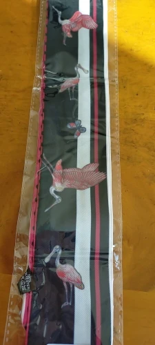Очень хорошие ленты. Брала 3 штуки. Пыталась сторговаться у продавца как за опт, но он не приклонен (снизить цену/посчитать единую сумму доставки). Отправил быстро, дошло до Москвы за 2 недели. Каждая в прямом виде в отдельном пакетике. Можно как на сумку на ручку, так и на голову как повязку или в хвост/пучок. Качество отличное, принт чёткий, при стирке не исчезнет и не полиняет. На данной ленте изображены фламинго и полосы с «горошком») многие изучают рисунок с интересом)) привлекает внимание. Фото добавлять не буду, их и так здесь много