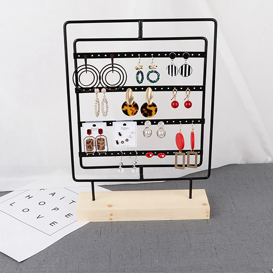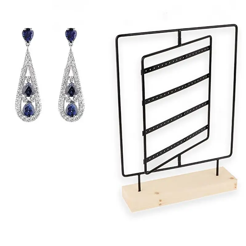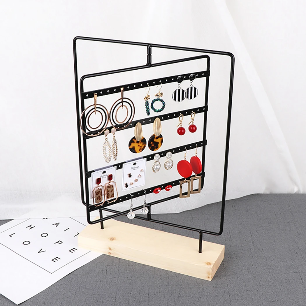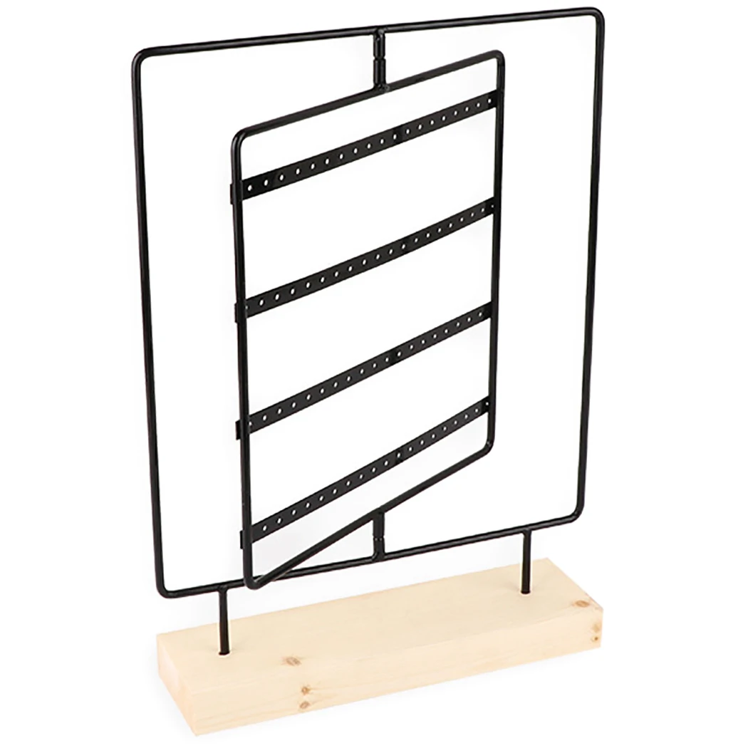 Вращающийся держатель для сережек, металлический держатель для сережек с деревянной основой, демонстрация ювелирных изделий, 76-серьга дырка, подставка, вешалка для ювелирных изделий