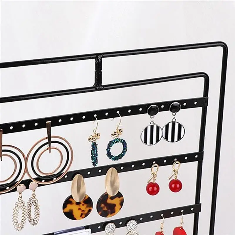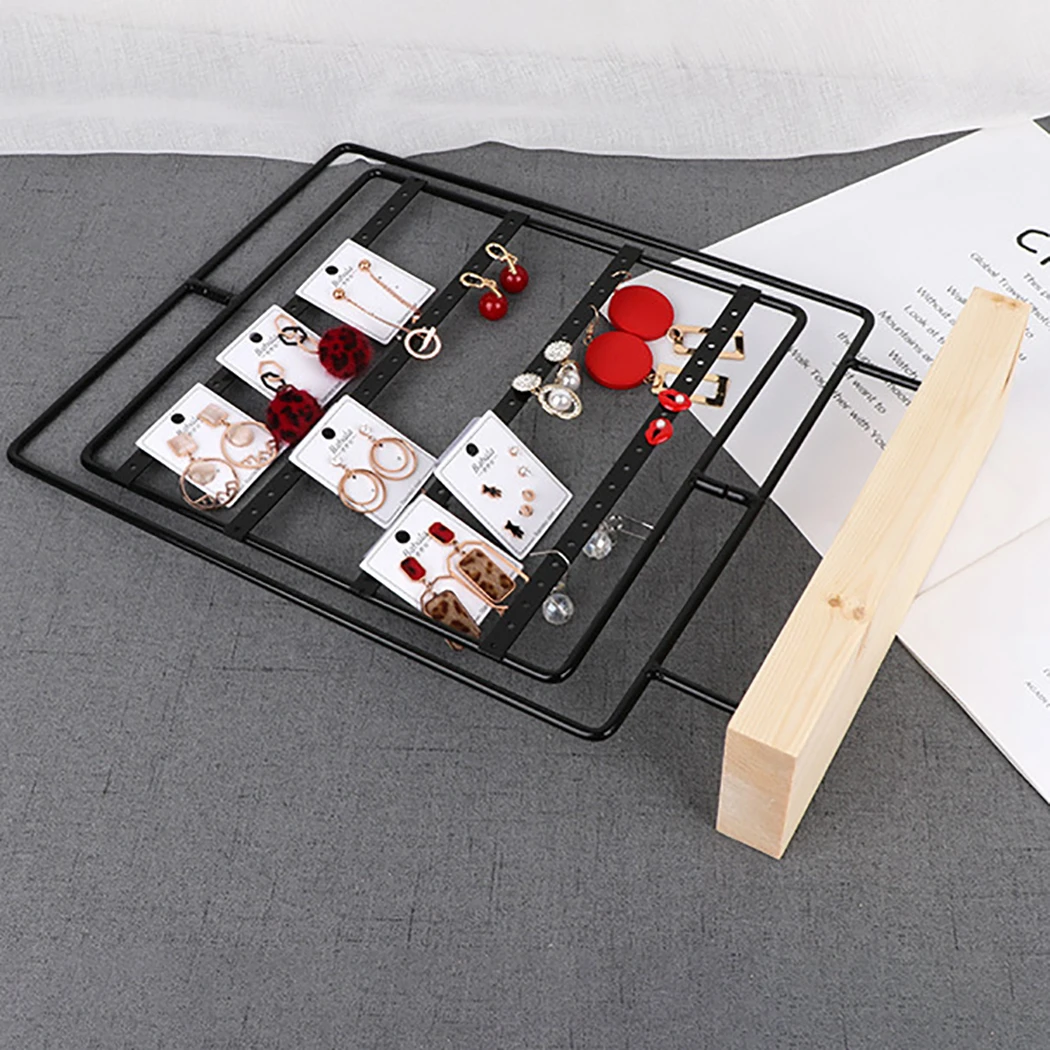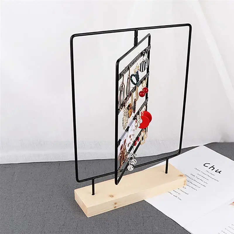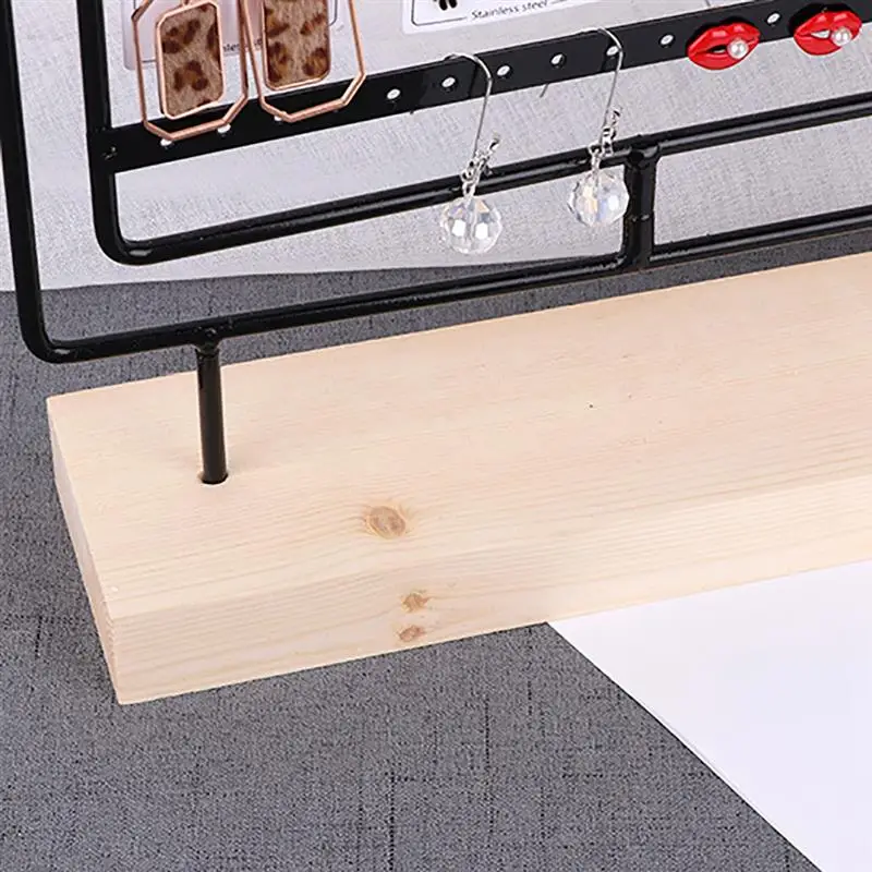 Вращающийся держатель для сережек, металлический держатель для сережек с деревянной основой, демонстрация ювелирных изделий, 76-серьга дырка, подставка, вешалка для ювелирных изделий
