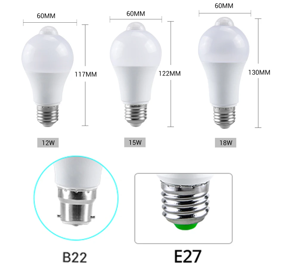Светодиодная лампа с ИК-датчиком движения E27 B22, 85-265 в, 121518 Вт