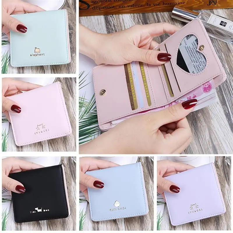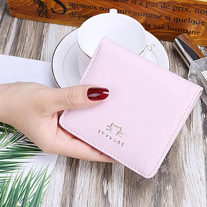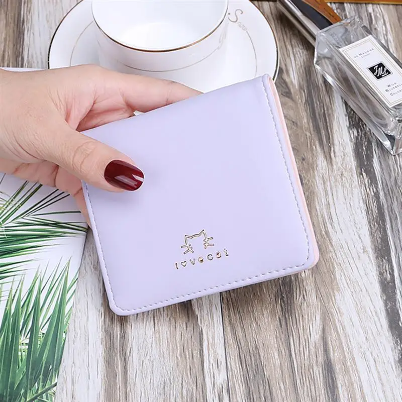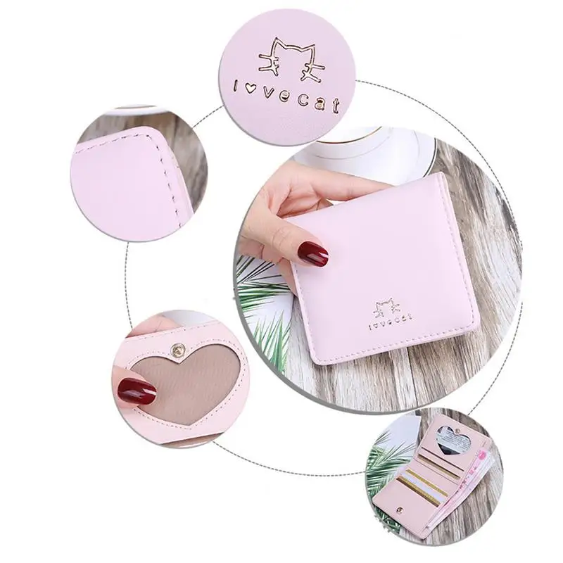 Кошелек женский кожаный, компактный, с кошачьей мордочкой, 2020