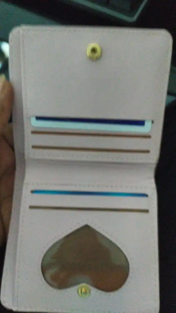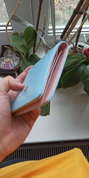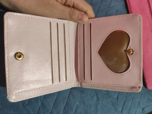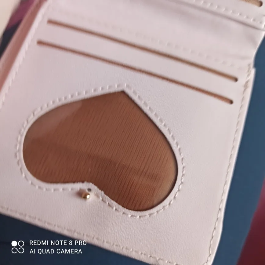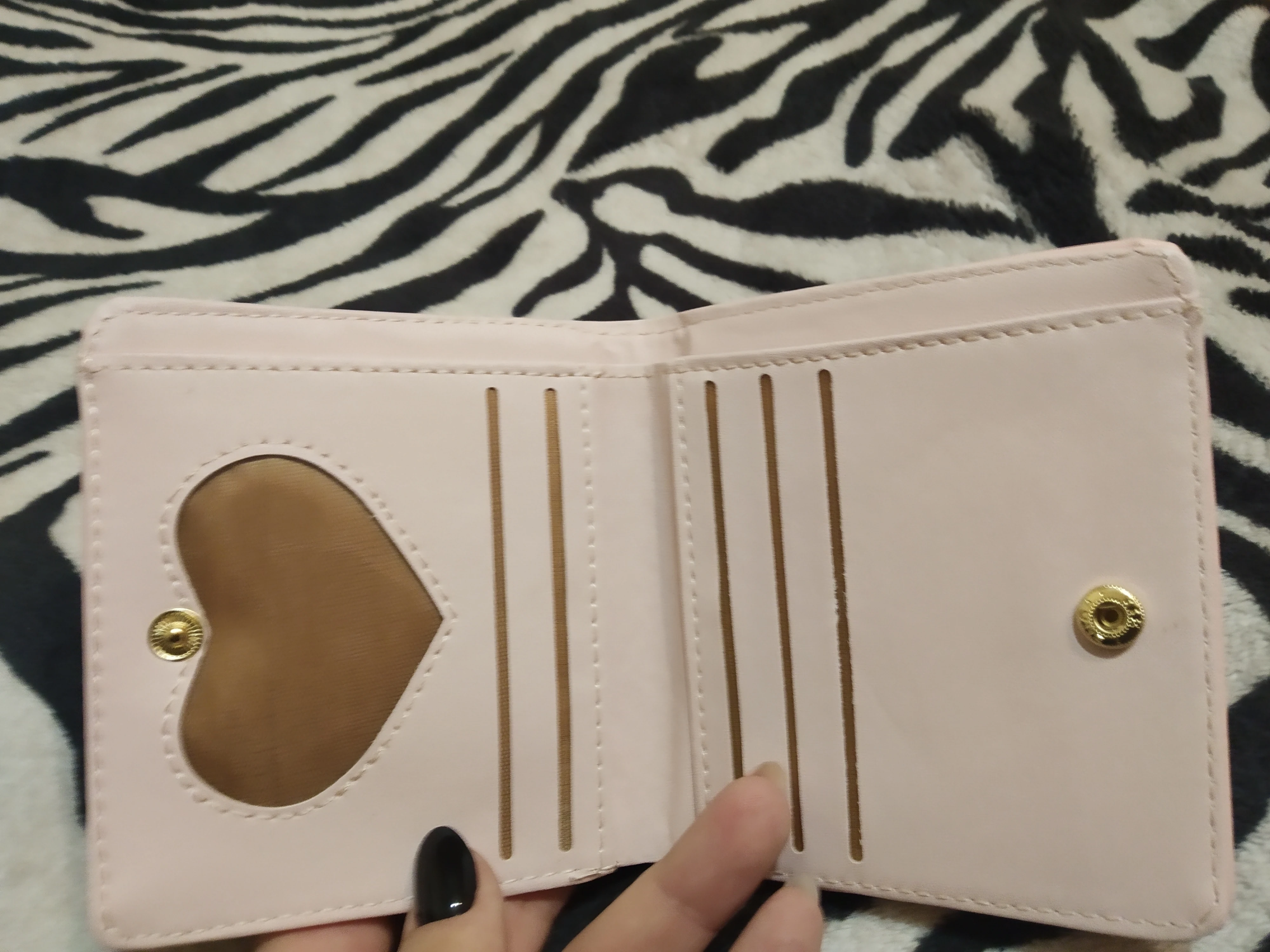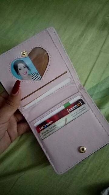 Хороший кошелек. Аккуратный и небольшой. Пару коротких ниточек торчало, но это не беда. Меня больше расстроило то, что нет отсека для монет. это, наверное, самый большой минус. но жить можно) Порадовало то, что где фотография, 'рамочка' в виде сердечка