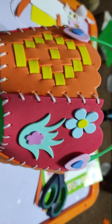 Корзина поставляется в комплекте, пена уже вырезана и проколется, остается собрать и украсить. Быстрая доставка. Я рекомендую этот продукт, он отлично подходит для простого самостоятельного творчества с детьми.