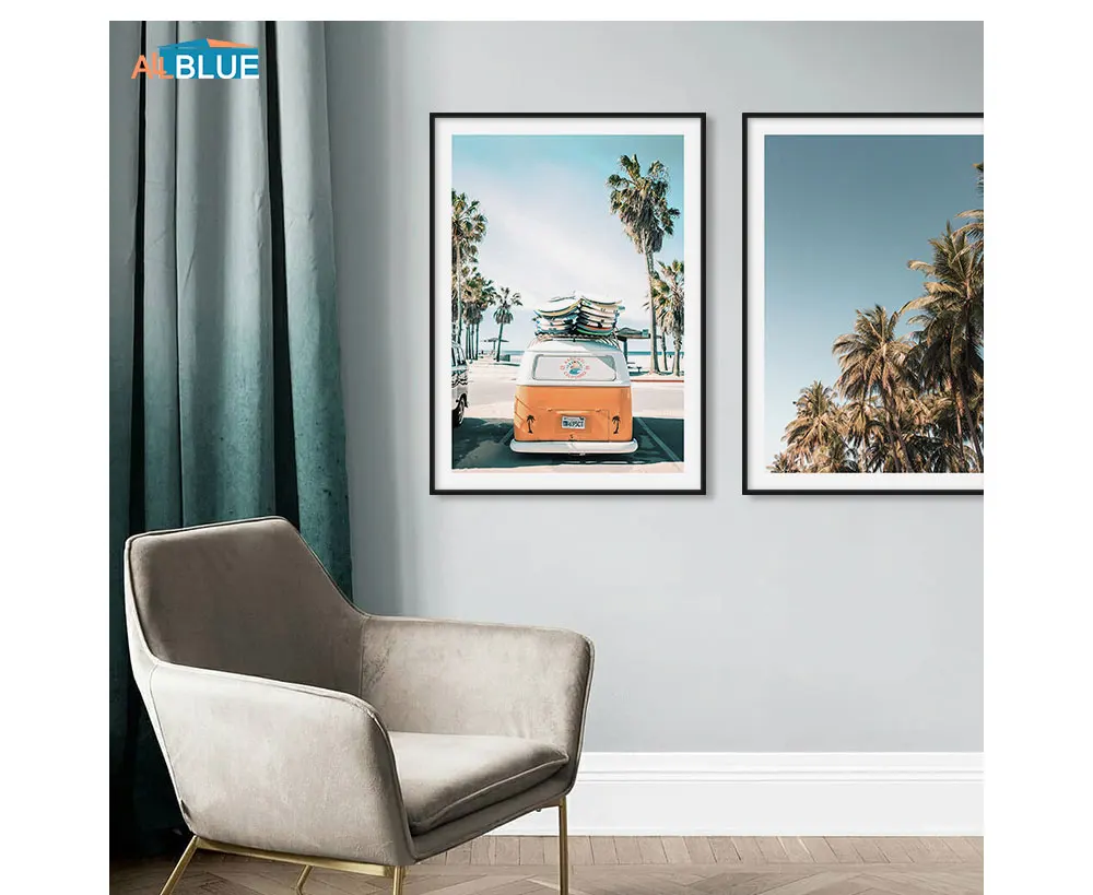 Картина с деревьями Северная Настенная картина Постеры-холсты и печать пляж Серфер автобус Ван Картина Настенная картина для гостиной домашний декор