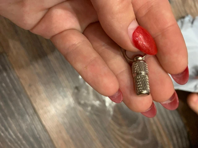 Наконец-то дождалась . уже спор оспорила,прошло время и....она пришла,эта прикольная штучка)))) Внутри бумажечка,на которой пишешь имя собаки или котика,адрес и телефон владельца. Закручивается надежно. Спасибо большое!