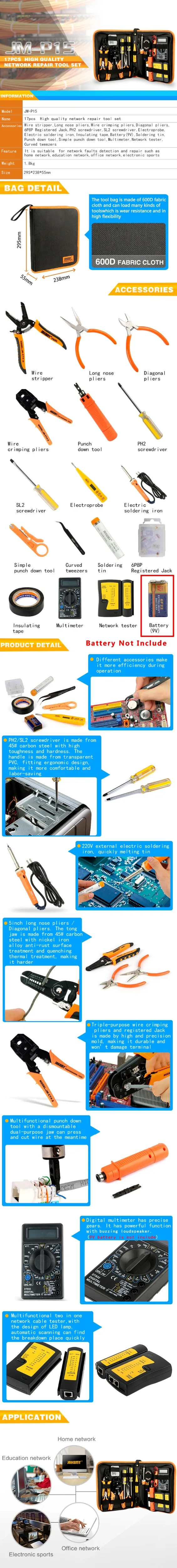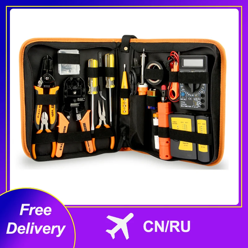 Набор инструментов для ремонта сетей LAN, 17 шт.компл., RJ45, RJ11, CAT5, CAT6, портативный кабель Utp, электронный тестер, плоскогубцы, обжимные заглушки