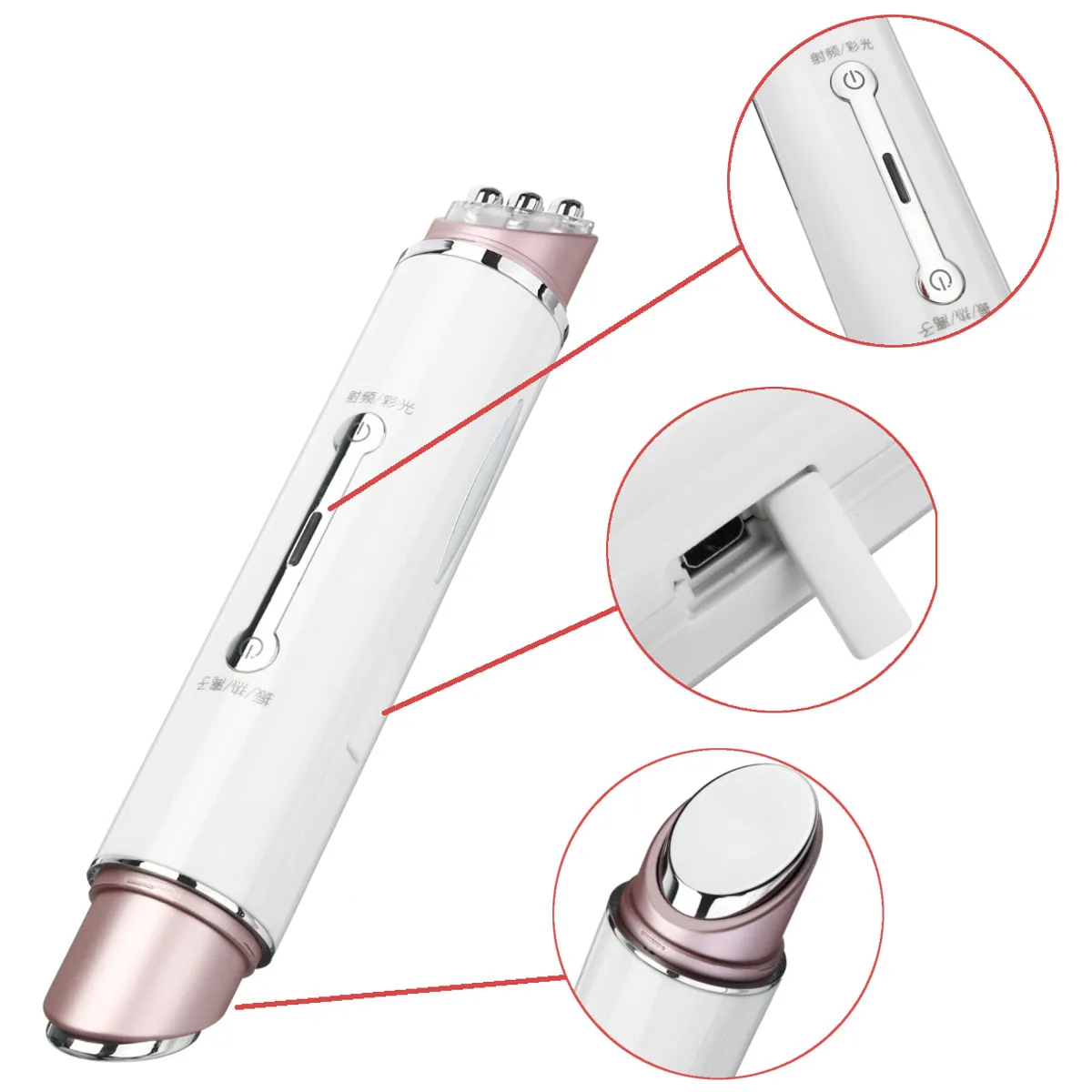 Радиочастотный и радиочастотный светодиодный фонарик с двойной головкой для мезотерапии, омоложения кожи, удаления морщин