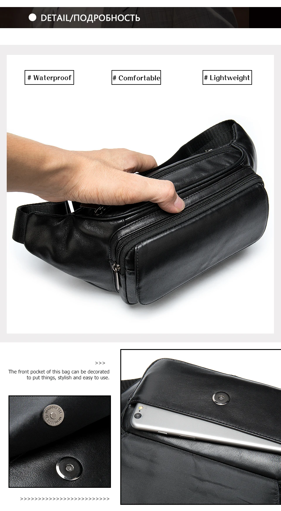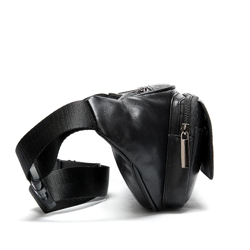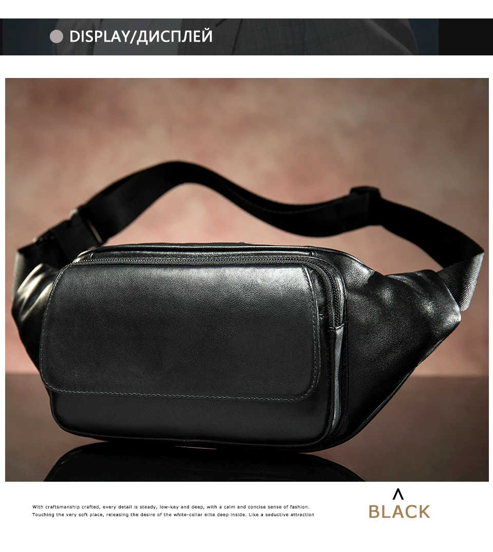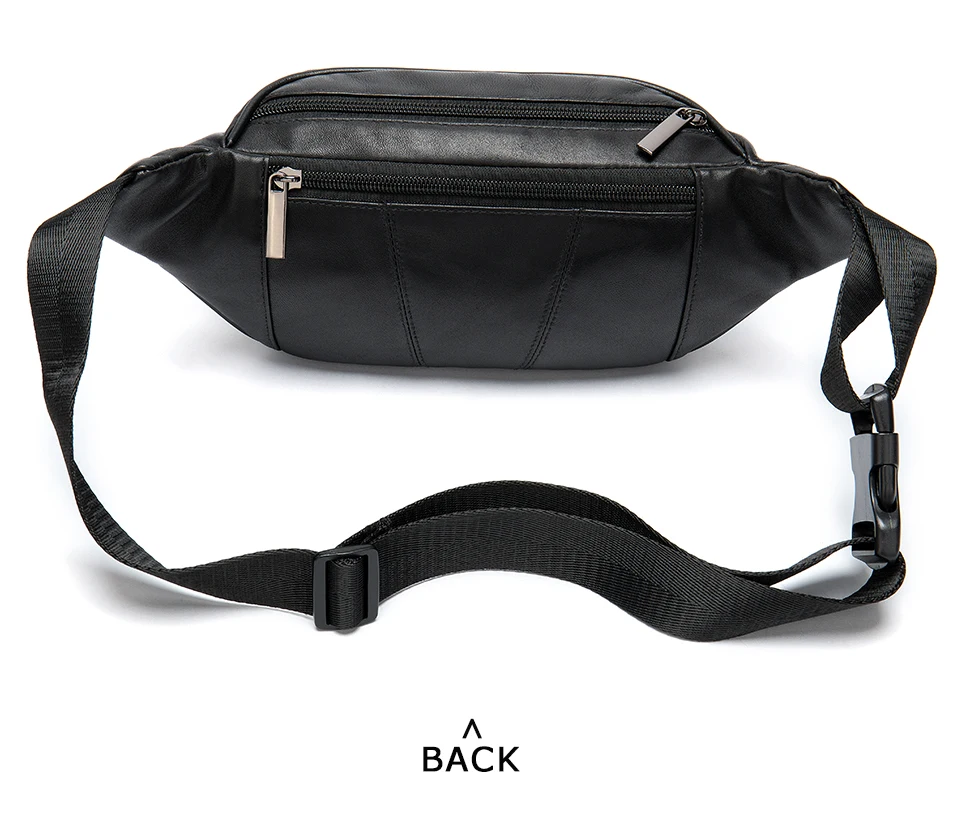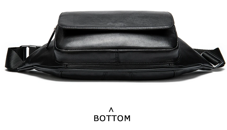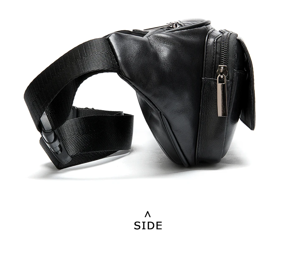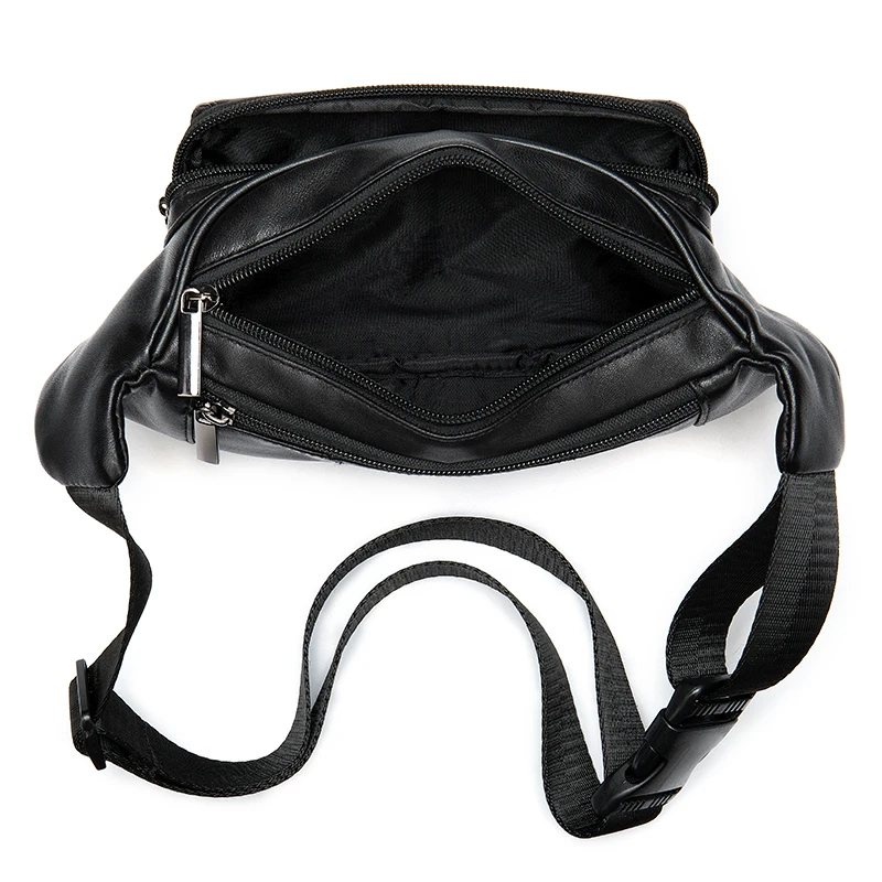 Сумка поясная мужская из натуральной овечьей кожи, черная, 8917