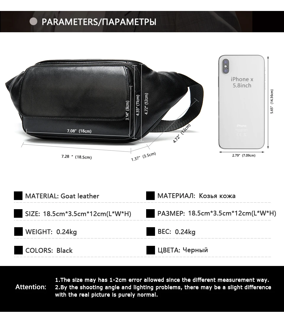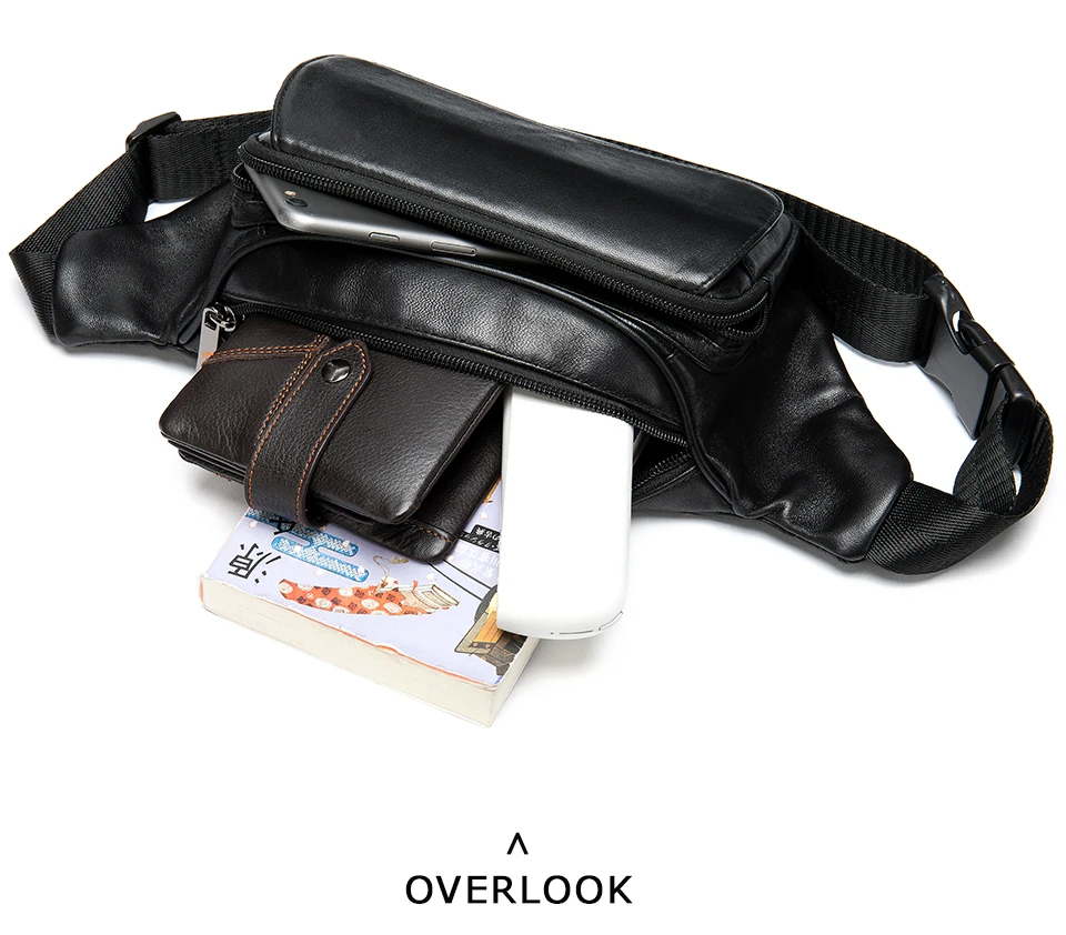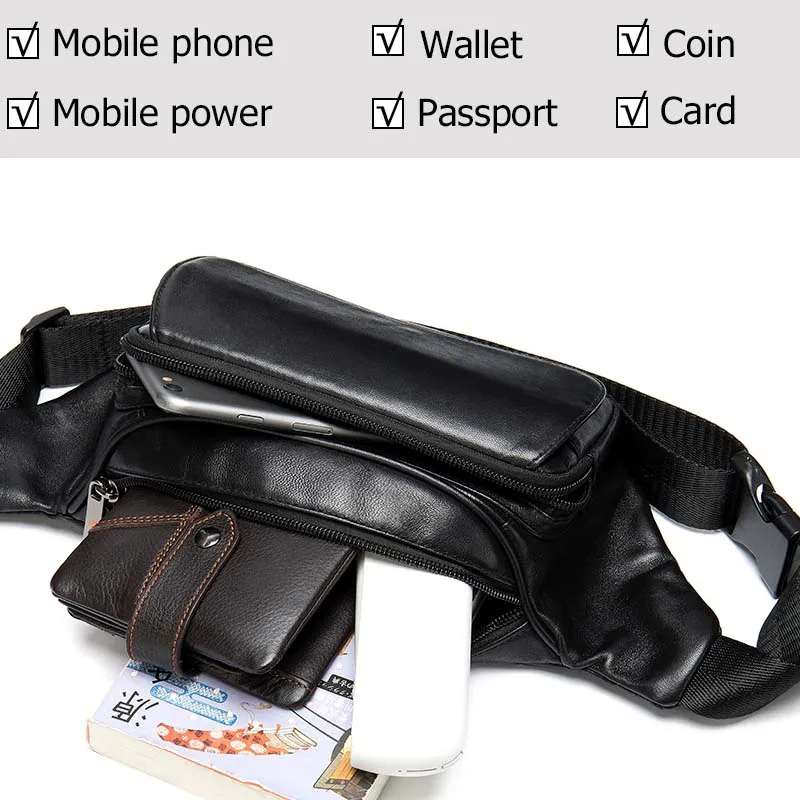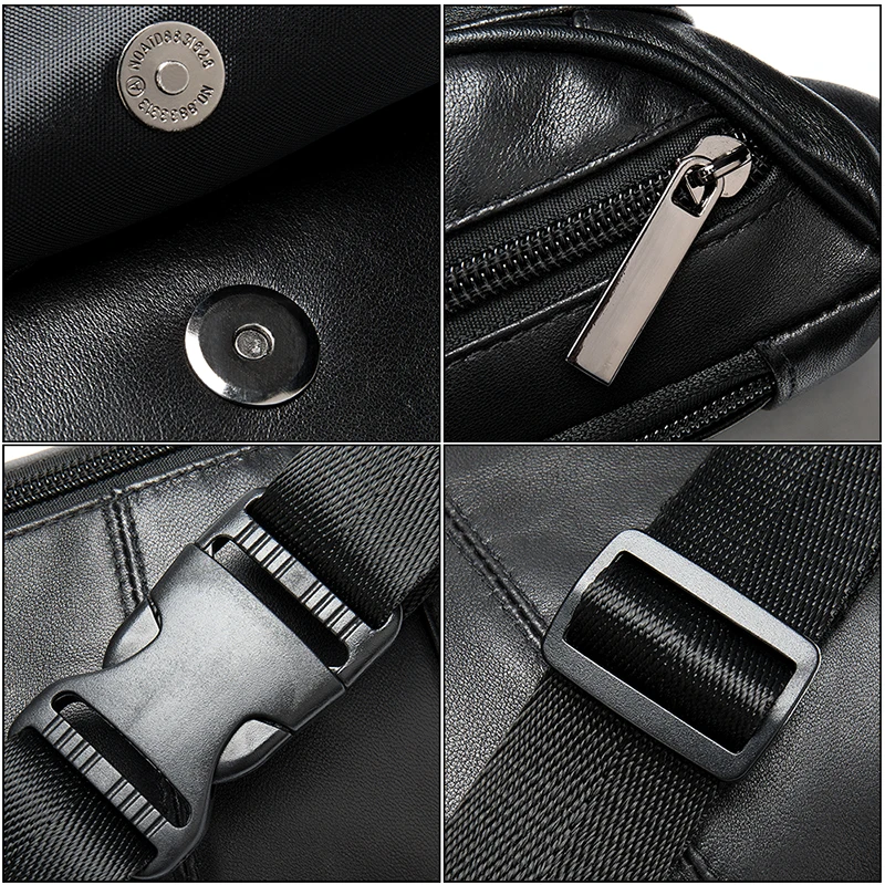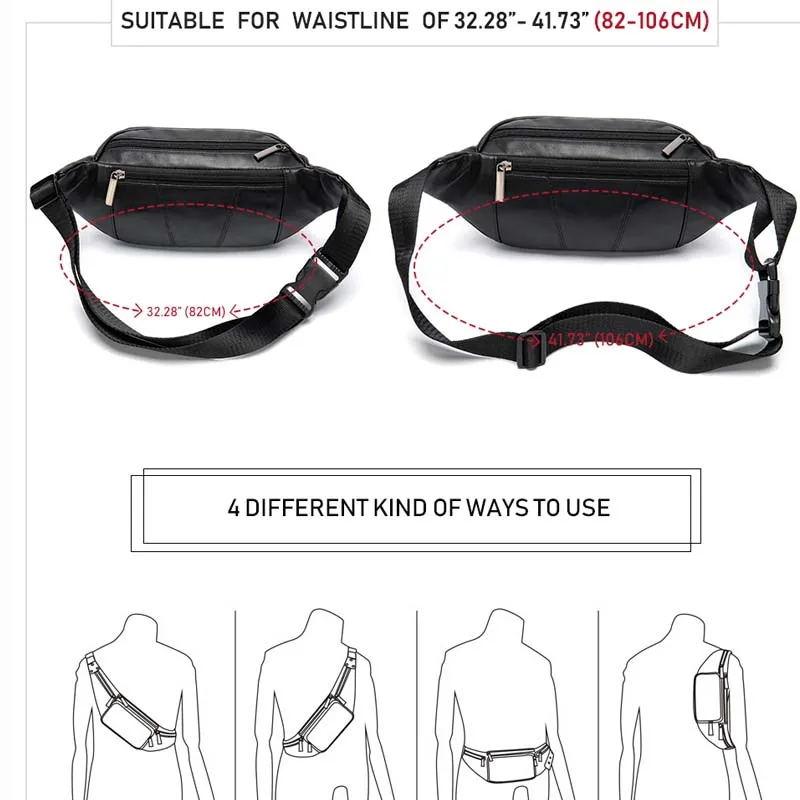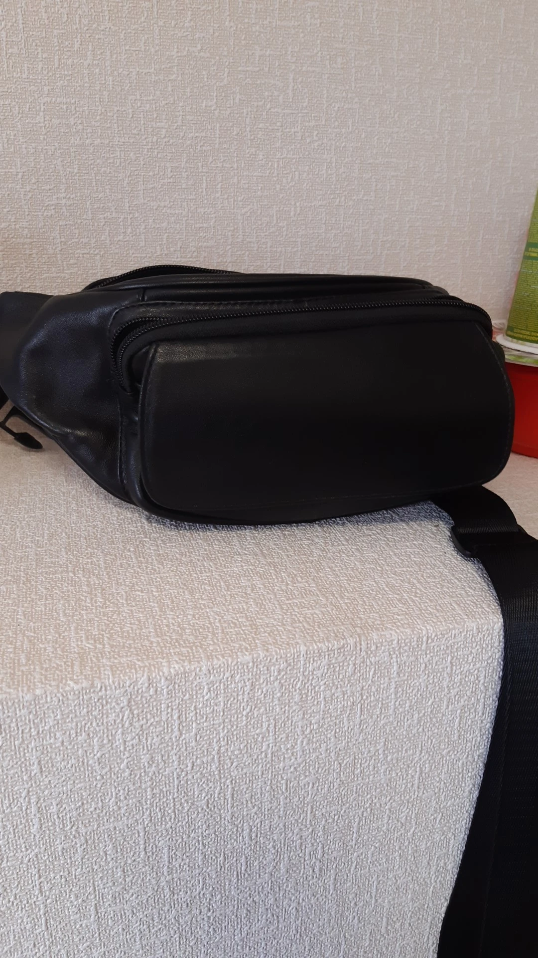 Сумка поясная мужская из натуральной овечьей кожи, черная, 8917
