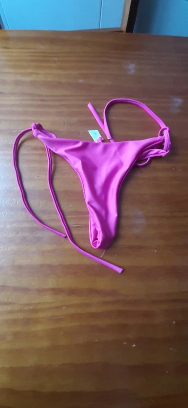 Это так же, как на фото, следует отметить, что это низкая талия и охватывает минимум как спереди, так и сзади. Хороший материал, у него двойная подкладка