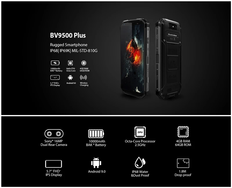 Blackview BV9500 Plus смартфон с 5,7-дюймовым дисплеем, восьмиядерным процессором Helio P70, ОЗУ 4 Гб, ПЗУ 64 ГБ, Android 9,0