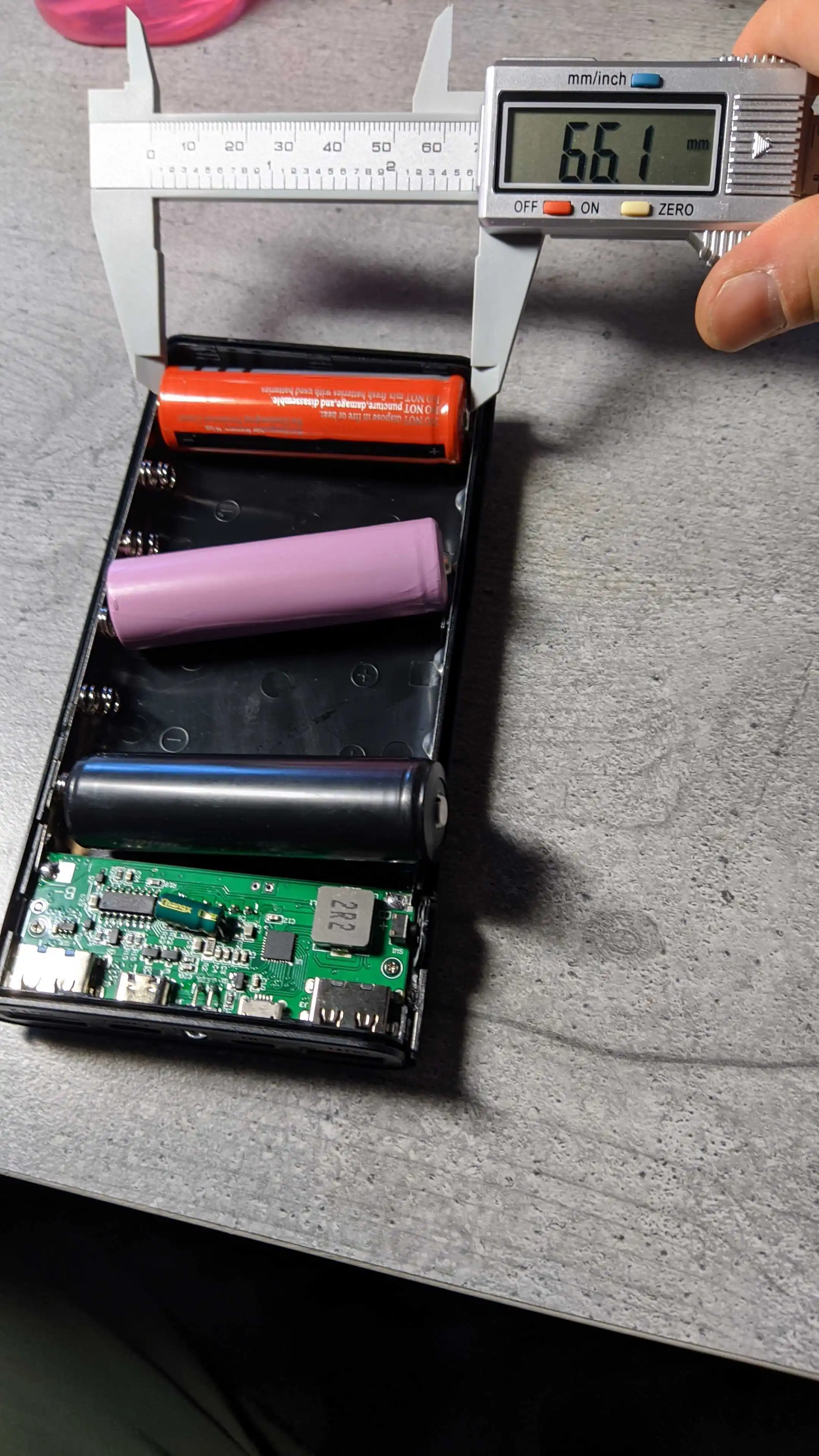 Внешний аккумулятор не принимает кнопки сверху или аккумуляторы с защитной схемой. Кажется, что максимальная длина составляет около 65 мм. Пробовал хорошие старомодные аккумуляторы keeppower 18650, но они были слишком длинными. Самая короткая батарея у меня 66,1 мм и даже слишком длинная. Информация об этом отсутствует. По крайней мере, здесь, в Финляндии, защищенные аккумуляторы с верхней частью кнопки гораздо более распространены, что незащищенные батарейки с верхней частью 18650.
