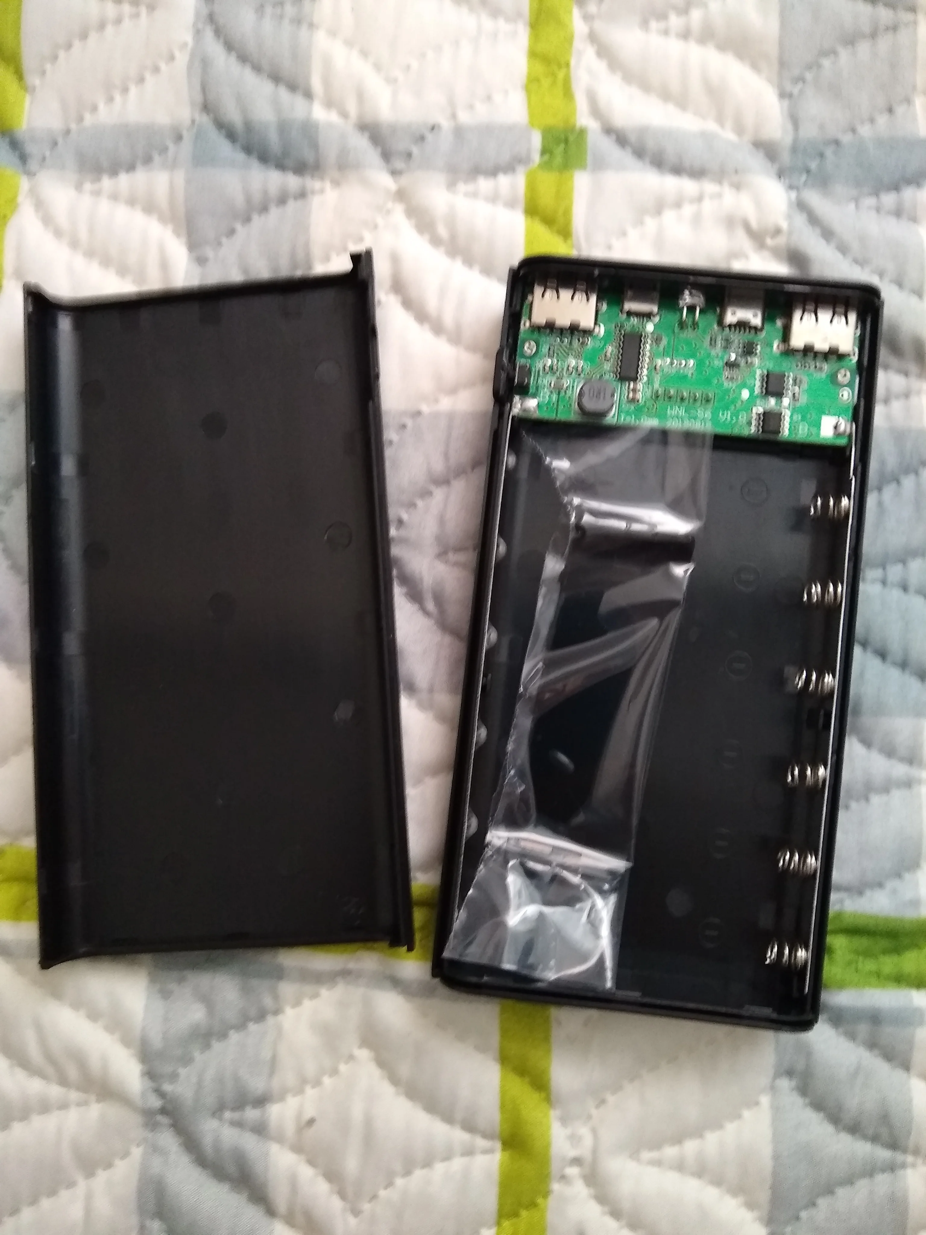 Очень быстрая отправка и доставка в Донецк! Пластик хорошо выглядит, без запаха. Пока поставил 4 аккумулятора от предыдущего PowerBank, на замену которому и покупал этот. В данный момент заряжается, скорость заряда примерно 1% в минуту. Фонарик работает ;) Возможно, потом дополню отзыв по результатам эксплуатации