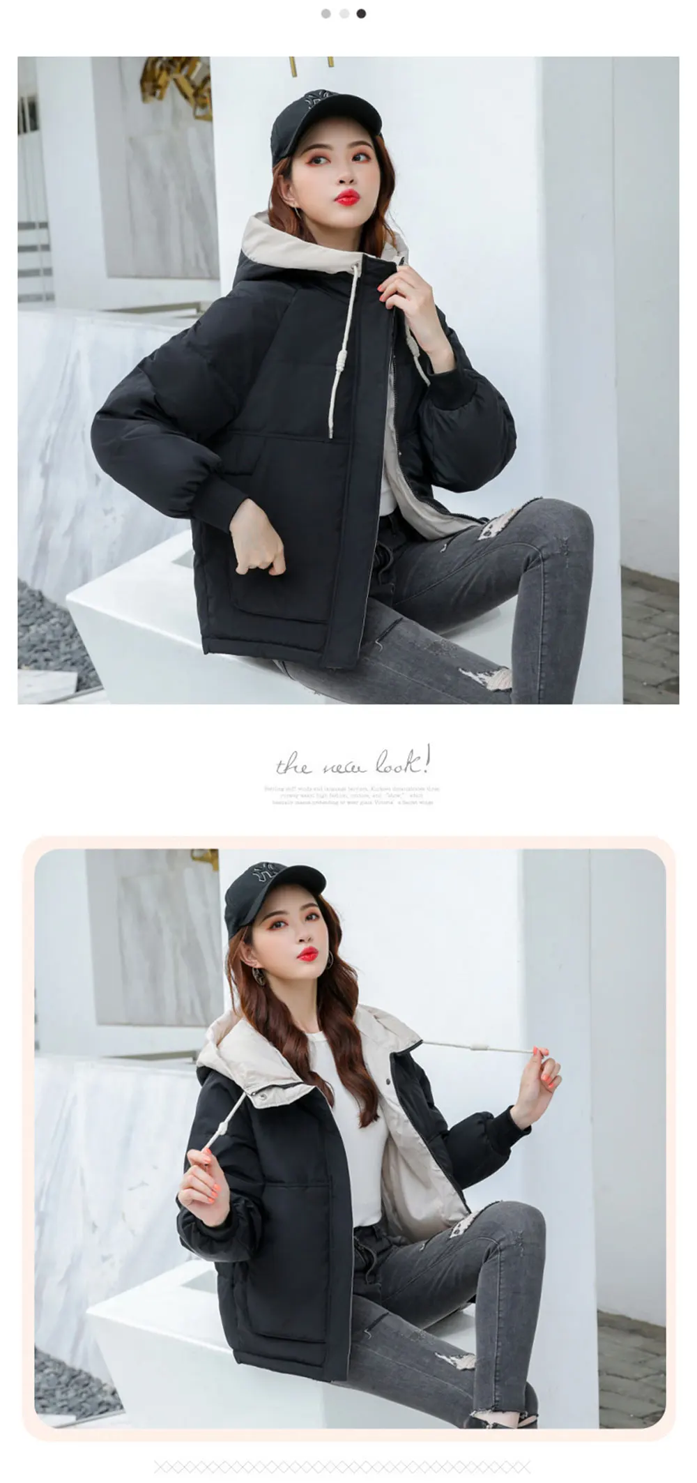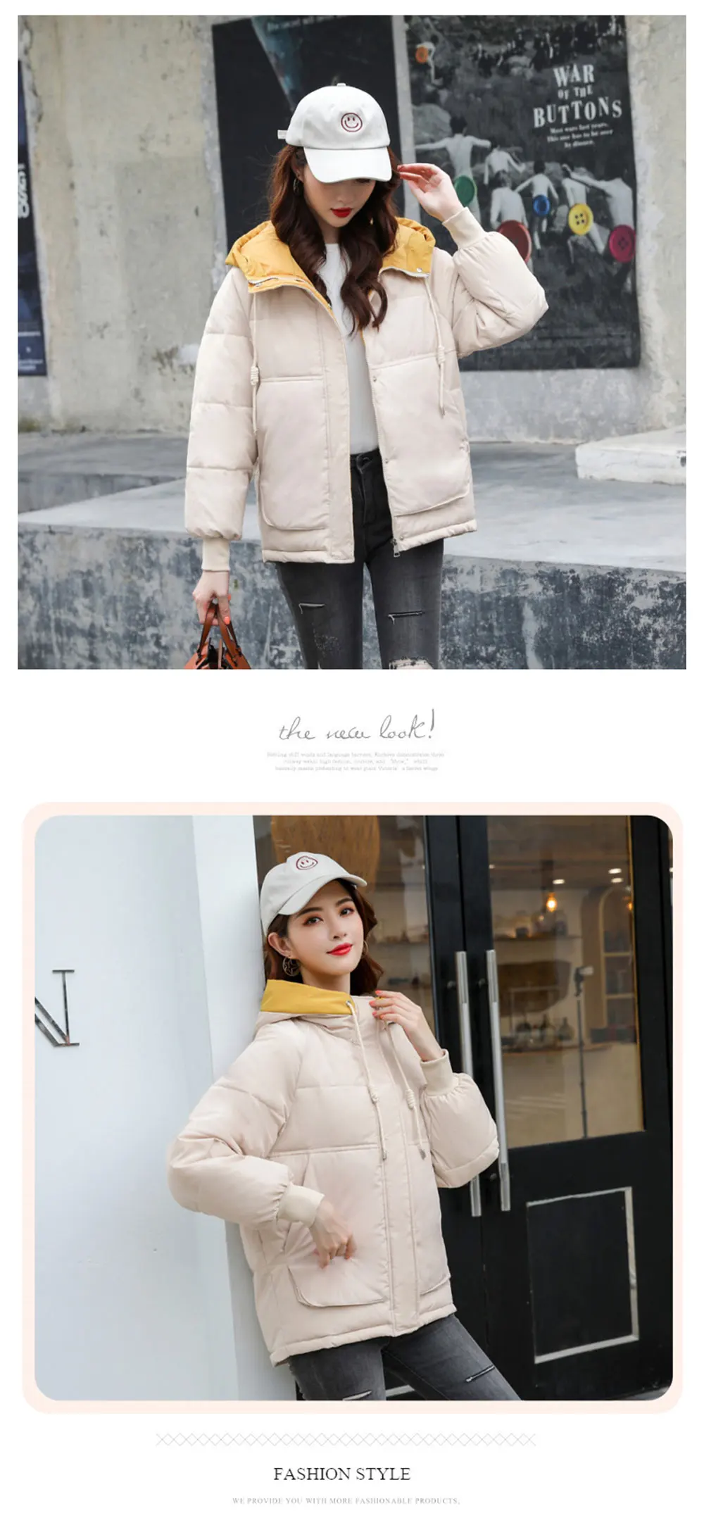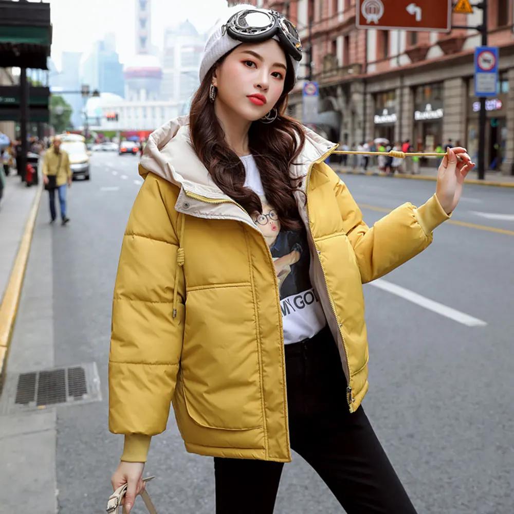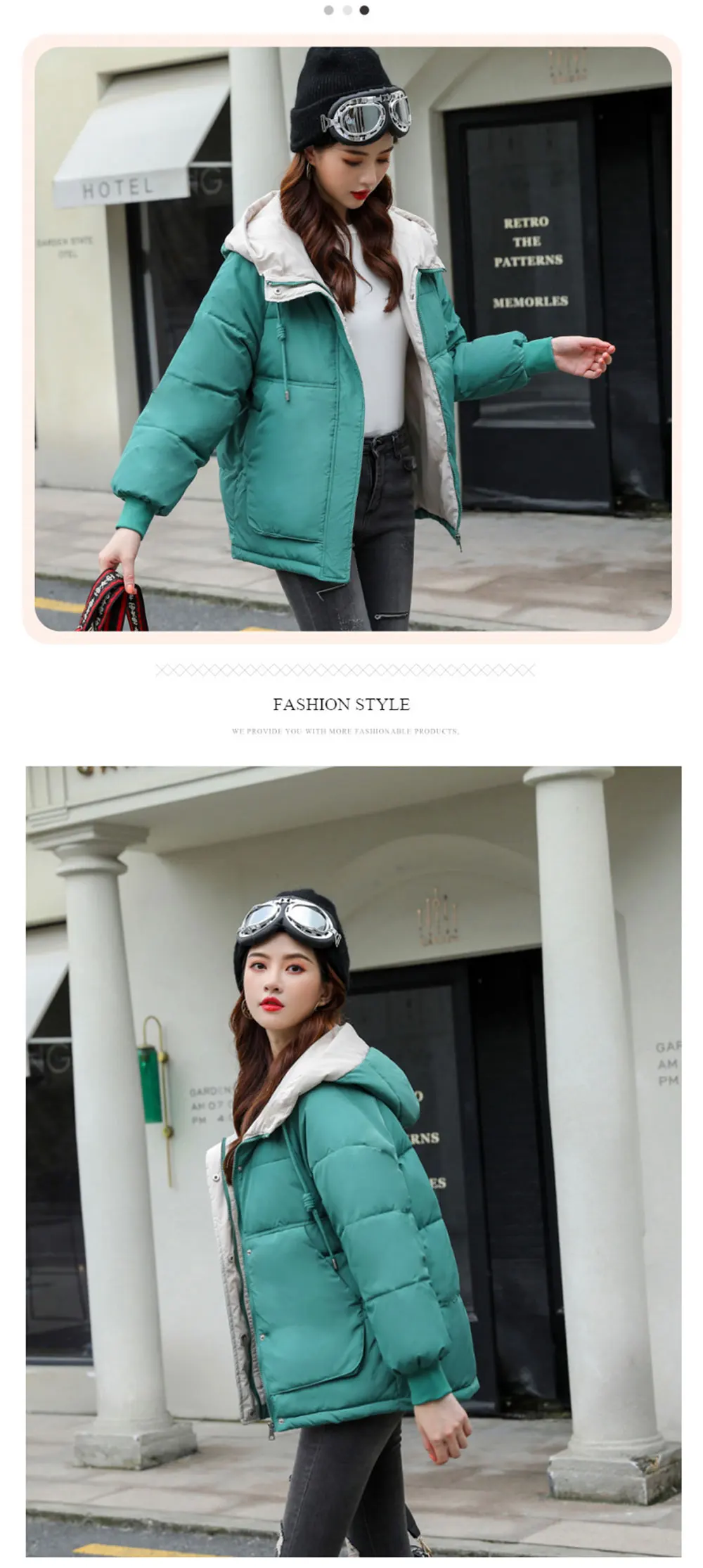 Куртка женская короткая с хлопковой подкладкой, с капюшоном, зимняя, 2020