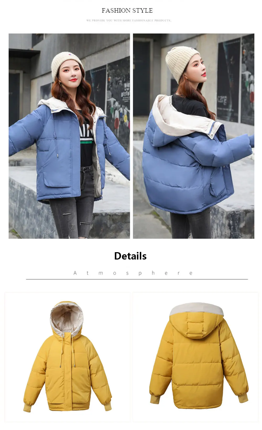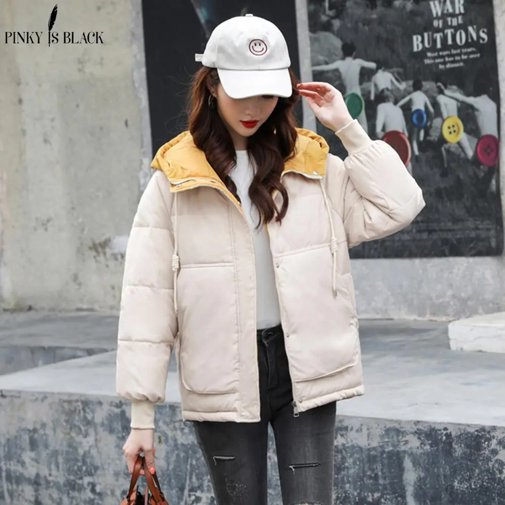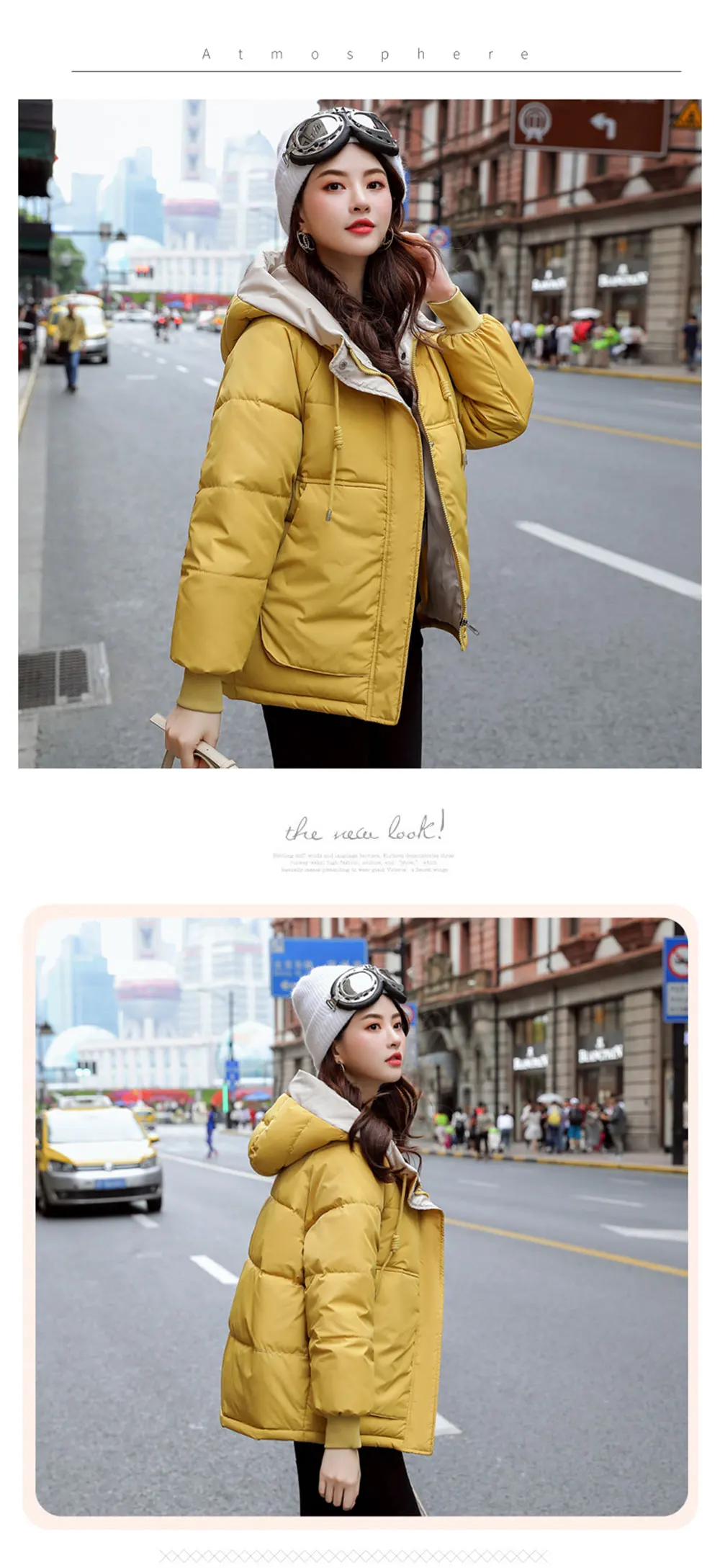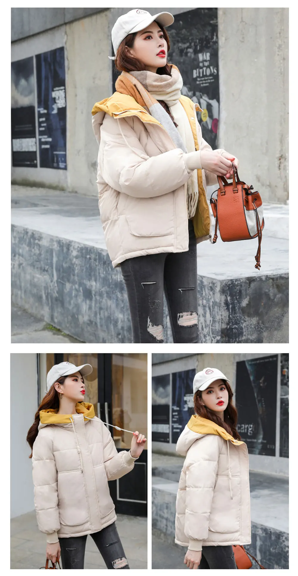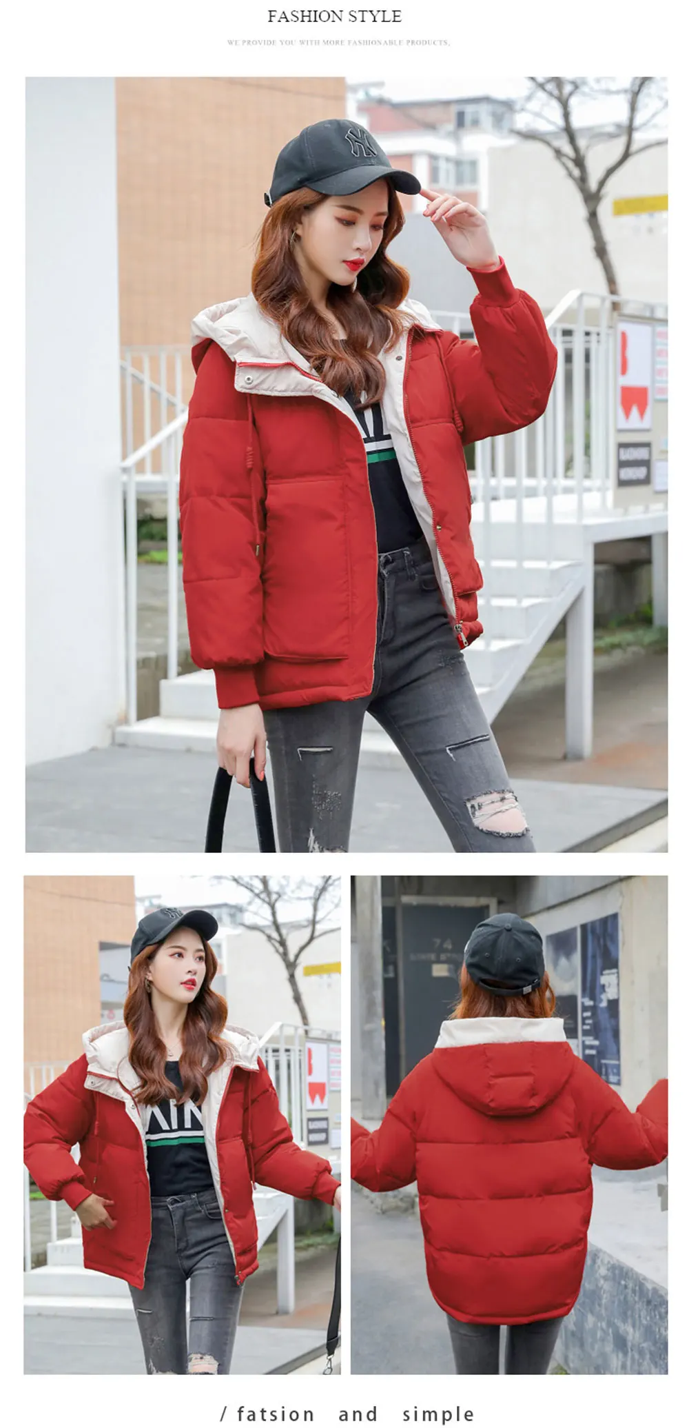 Куртка женская короткая с хлопковой подкладкой, с капюшоном, зимняя, 2020