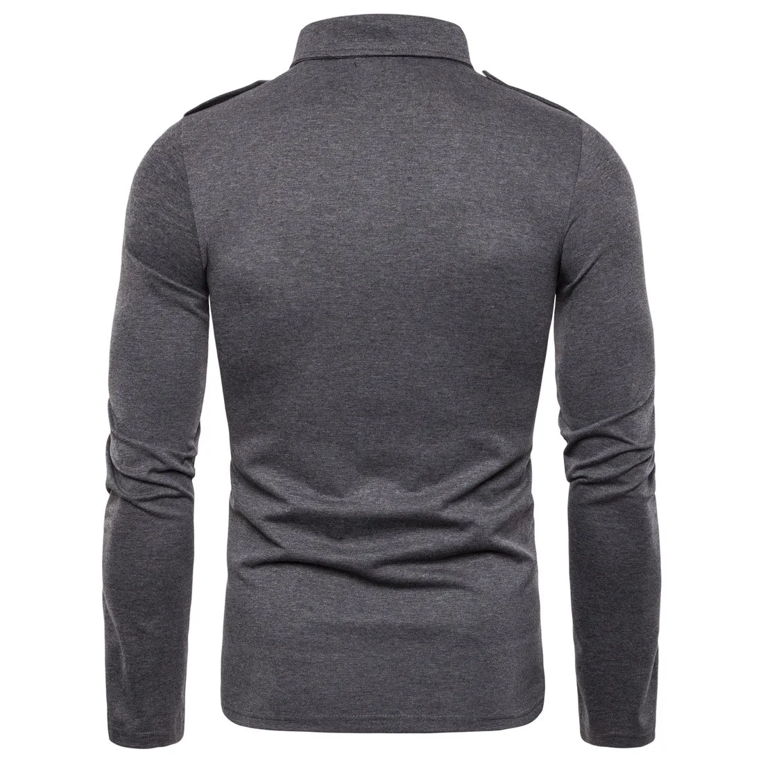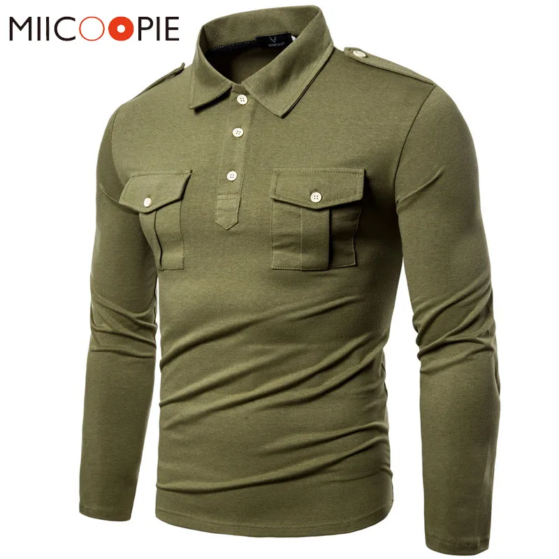 Поло мужское, 2019, с двумя карманами, с длинным рукавом