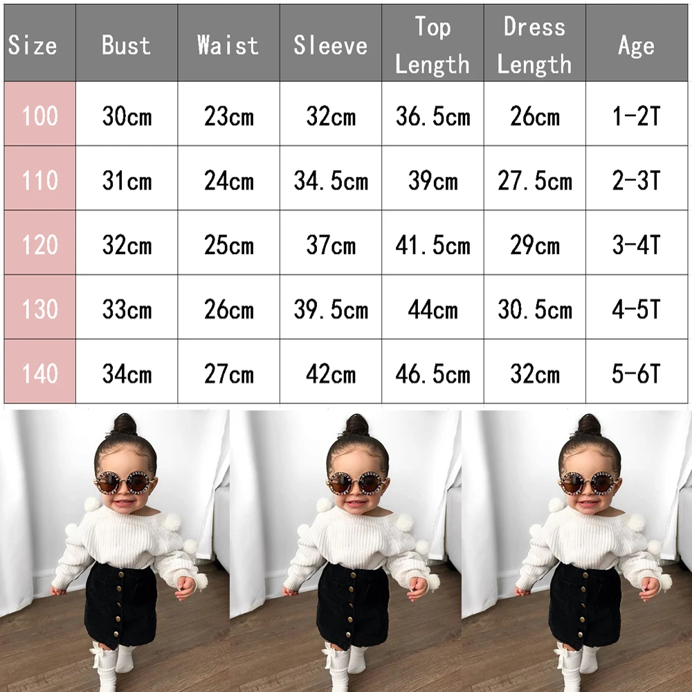 Осенние комплекты одежды для маленьких девочек, вязаные кофты с длинными рукавами и меховыми помпонами + мини-юбка на пуговицах, теплые комплекты, От 1 до 6 лет