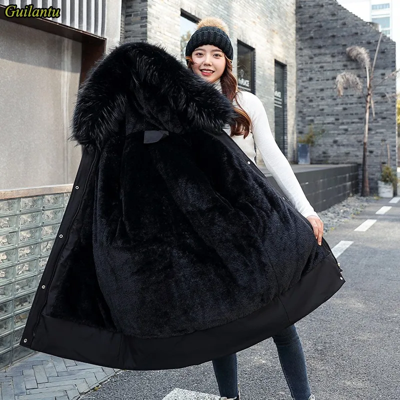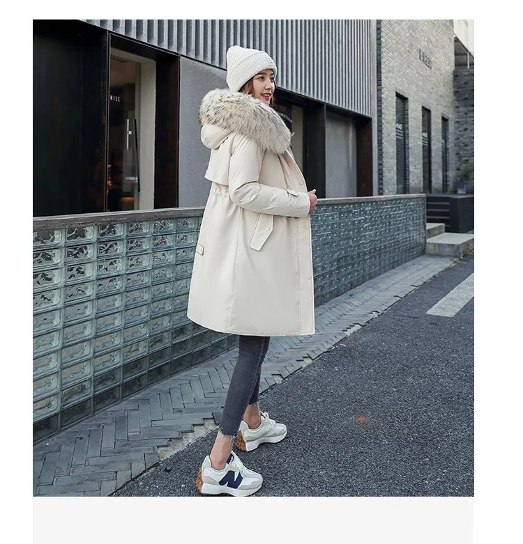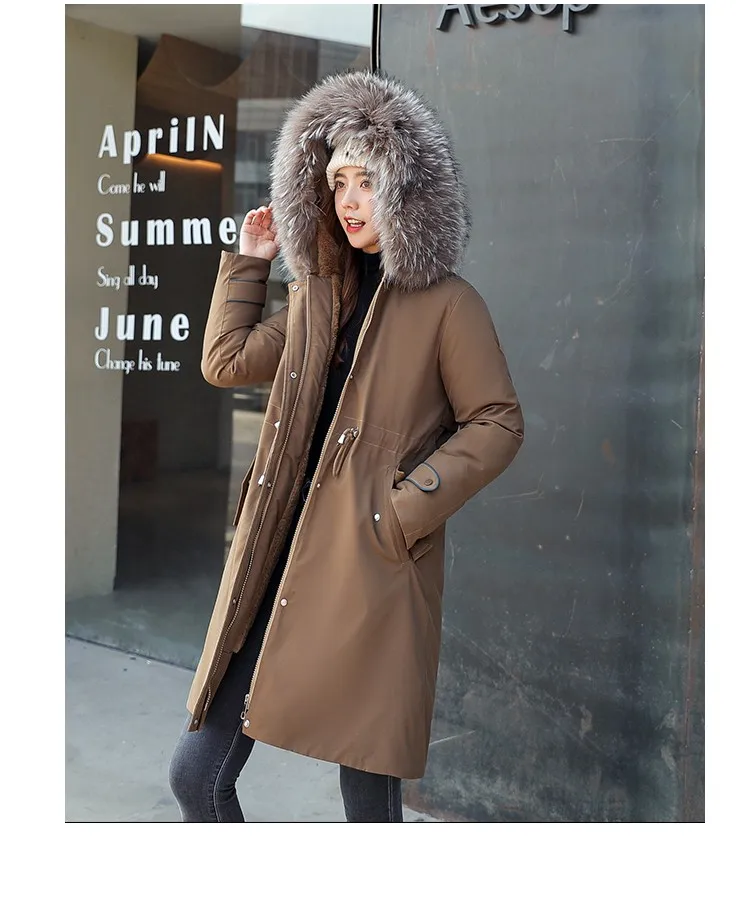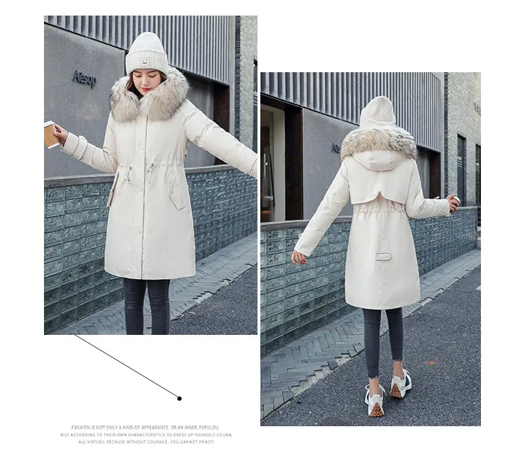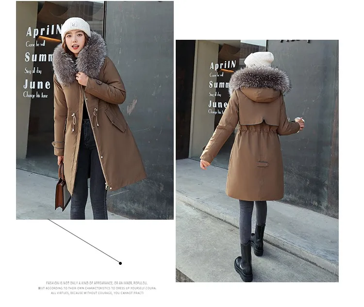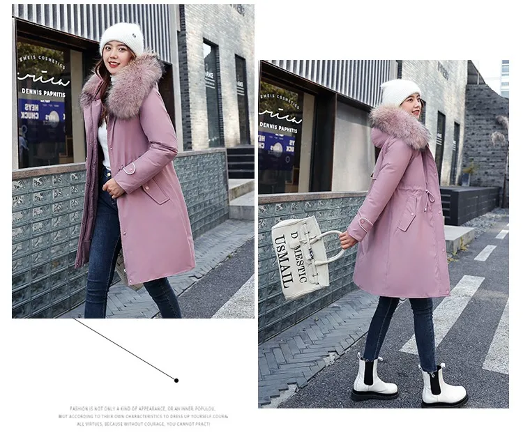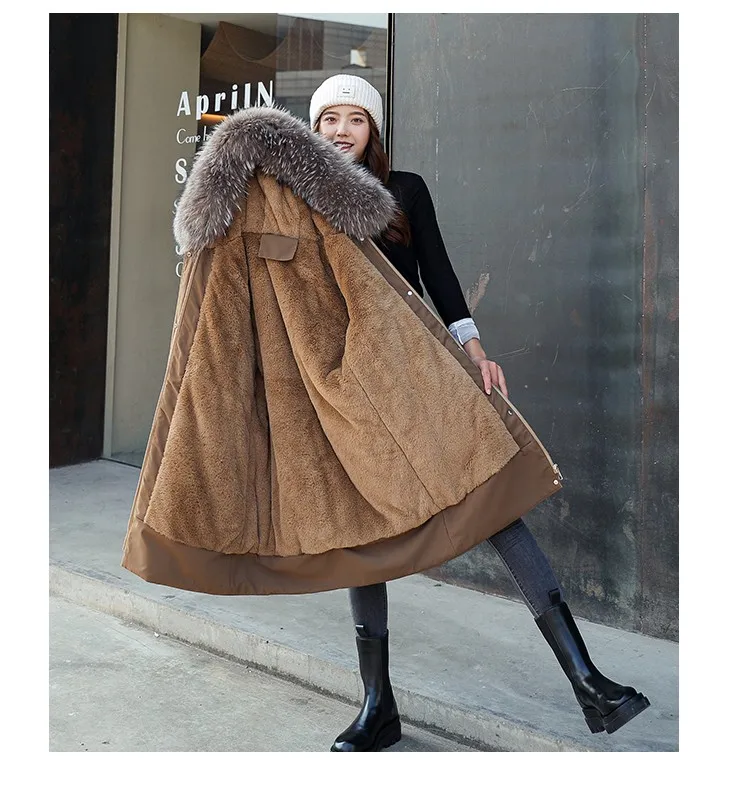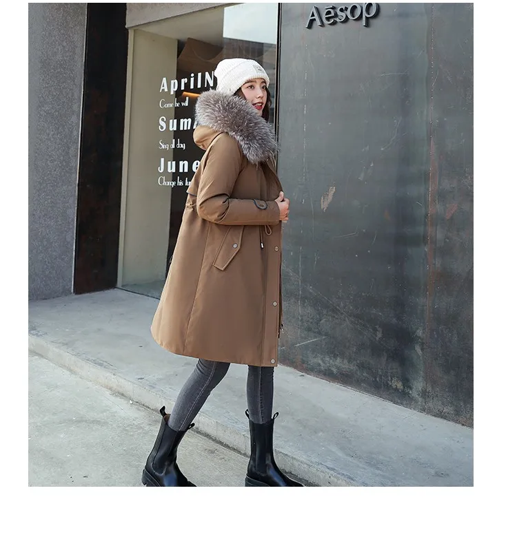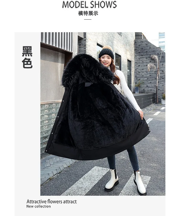 Пальто с подкладкой из 2021 хлопка, зимняя куртка для женщин, большие размеры, тонкое длинное пальто, женская модная большая парка с меховым капюшоном, пальто для женщин
